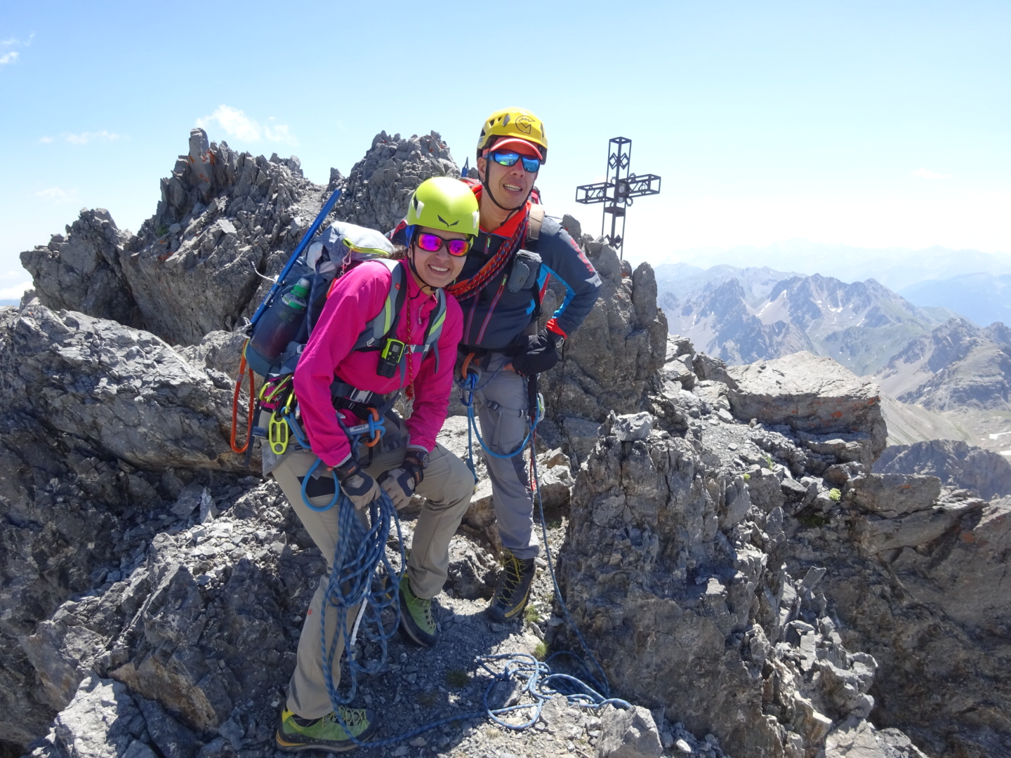 Bellissima gita, una grande classica che non ci poteva mancare. Comodo sentiero fino al lago Oronaye, poi la musica cambia. Noi abbiamo seguito le tacche rosse, prima sul faticoso ghiaione che porta all’accesso al canale, e poi risalendolo fino a quota 3050 dove comincia la parte alpinistica. Nel canale grande attenzione alla caduta di pietre, specie se ci sono altre persone, parte alpinista breve e non troppo difficile. Al contrario di altre relazioni, noi di spit non ne abbiamo praticamente visti, solo 1 oltre le 2 soste che abbiamo utilizzato per 2 brevi calate. Volendo si può disarampicare, ma visto che ci eravamo portati la corda l’abbiamo usata!