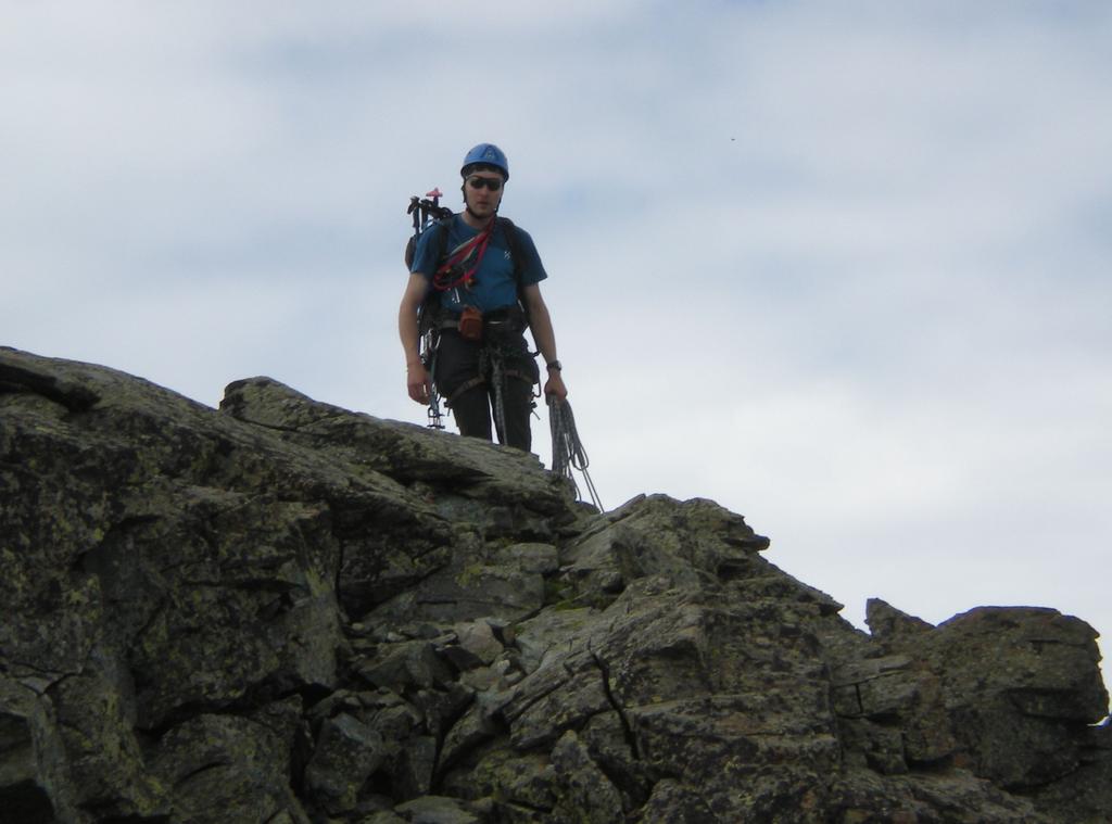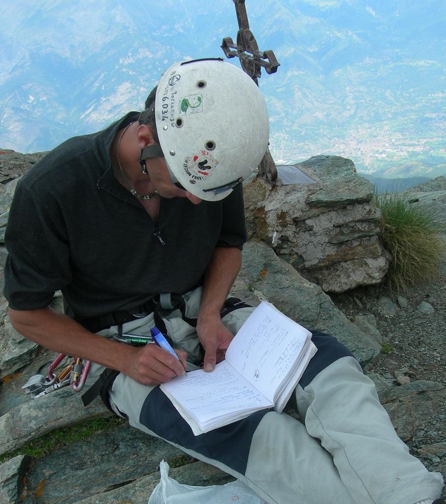 …il tempo scorre in fretta e dopo due salite a due quattromila (o quasi poichè uno mancato per soli 100m per via della stanchezza) bisogna darsi da fare con le vie classiche di cresta, il tempo di fare due telefonate a Renzo e Max (a Chiara invece le avevo detto che nel fine settimana avremmo fatto solo quattro passi) e si parte per la Dumontel (2a volta per me, la 1a nel 2006 uscita del corso di alpinismo).All’attacco due cordate: Max da primo legato con Renzo ed Io da primo legato con Chaira. La salita si svolge su roccia buona e si alternano alcuni tiri di corda assicurati con cordini (oppure volendo portarsi dei friend)a tratti in conserva, una via elegante che presenta qualche passaggio aereo, nel complesso credo che sia giusta la classificazione di AD. Scesi per la normale e merenda da Massimo del Selleries con acciughe al verde e tome. Giornata in piacevole compagnia di vecchi amici conosciuti al corso di alpinismo (Max era uno dei mie istruttori), e discesa con Chiara che mi diceva “per fortuna erano solo quattro passi…”