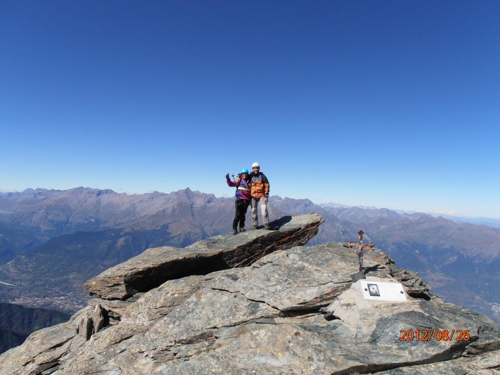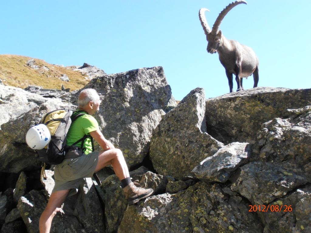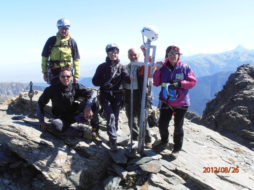 Gran bella salita alla cima Orsiera attraverso la storica Cresta Dumontel, effettuata con la magistrale assistenza di Claudio, Miriam e Alessio, oltre alla compagnia di Cri e il “giovanotto” Babbo Bruno. Passaggi non difficilissimi ma mai banali (per me…), ottima giornata di inizio ferie (domani si va al mare…).Panorama bellissimo dalla cima, venticello fresco che pero’ ha mantenuto la giornata serenissima e limpida. All’attacco della cresta una coppia di stambecchi osservava tranquillamente le nostre manovre.