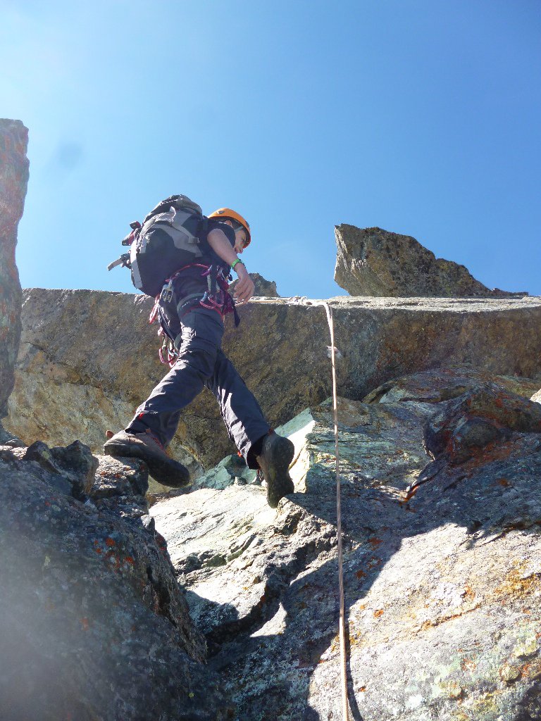 difficoltà, gradi ed esposizione in linea con la descrizione della relazione; qualche errore l’abbiamo commesso alla partenza; chiacchierando distrattamente dopo il lago abbiamo imboccato il sentiero che di fatto è quello di rientro; ad un certo punto ci siamo “ripresi” ed abbiamo corretto la traiettoria: su e giù per pietraia e ripido pendio erboso abbiamo recuperato il percorso; così facendo, rispetto ai tempi della relazione abbiamo “allungato” di venti minuti; mantenersi fuori sentiero più alti del bordo lago ma seguendone il perimetro; non abbiamo trovato, forse per via dell’errore, un segnale/ometto in corrispondenza dell’attacco quindi siamo andati a fantasia; per il resto seguito le indicazioni della relazione cercando di mantenere sempre il filo di cresta; ci si sposta di lato (solitamente versante val susa) solo quando è evidente che rimanendo sul filo il grado da affrontare sarebbe ben più alto rispetto al II / III indicati dalla relazione; quasi sempre in conserva, due brevi sicure nei punti più delicati per l’esposizione: dal rifugio alla cima h 4,20