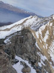 secca prima di ripartire abbiamo attaccato la cresta al 12.30 due cordate io e Dario guidata da lui e Ale e Scandu ci abbiamo messo parecchio tempo circa 4h per farla tutta in sicurezza creando soste e mettendo protezioni intralciati un po’ dal vento freddo e il cielo coperto e soprattutto una cordata di due ragazzi che ci ha superato in malo modo e poi non andavano avanti…. Comunque è stata una bella esperienza.. un pelo estrema per via del freddo ma molto soddisfacente. Dalla cima per far prima a scendere siamo scesi dal canale ovest e ci siamo andati sopra di parecchio perché in circa 2 ore neanche eravamo giù alla macchina