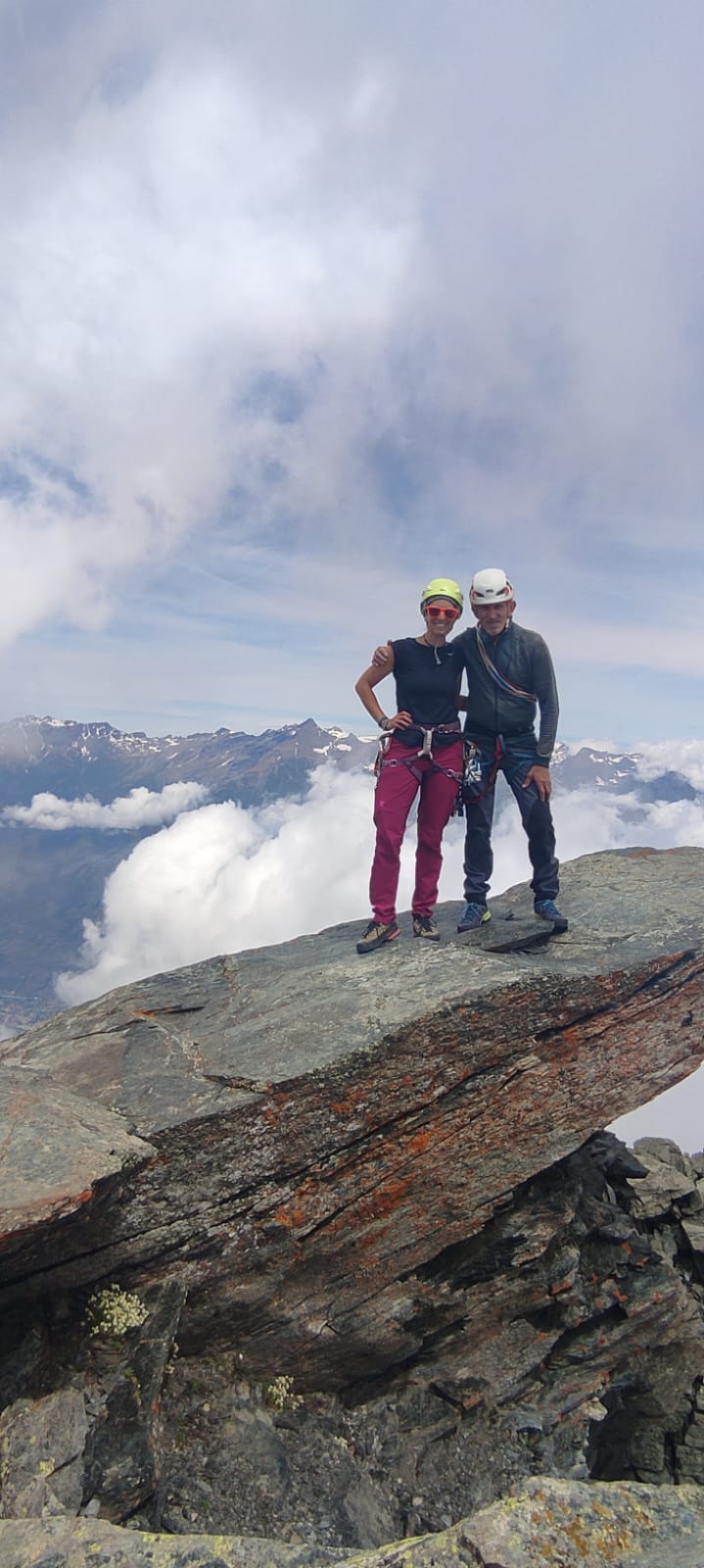 Con i soci Lucia e Titti che ci ha condotto tutta la salita: le sue prime esperienze su vie alpinistiche da primo di cordata