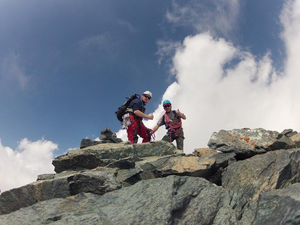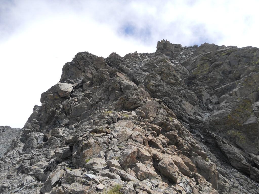 Bella salita con difficoltà limitate e piuttosto breve (purtroppo). La salita è molto divertente, noi ci siamo legati ma siamo saliti tutto il tempo in conserva e solo nel primo pezzo del pilastrino in conserva protetta (nut medio-grande). La roccia dove è verdastra è scivolosa per natura altrimenti è buona, nei tratti più facili e nelle cenge è un po’ più rotta. Abbiamo evitato il primo vero tratto della cresta perchè di roccia marcia. Molto bello il camino che si incontra a metà. La parte finale della cresta è molto facile e in alcuni punti esposta.