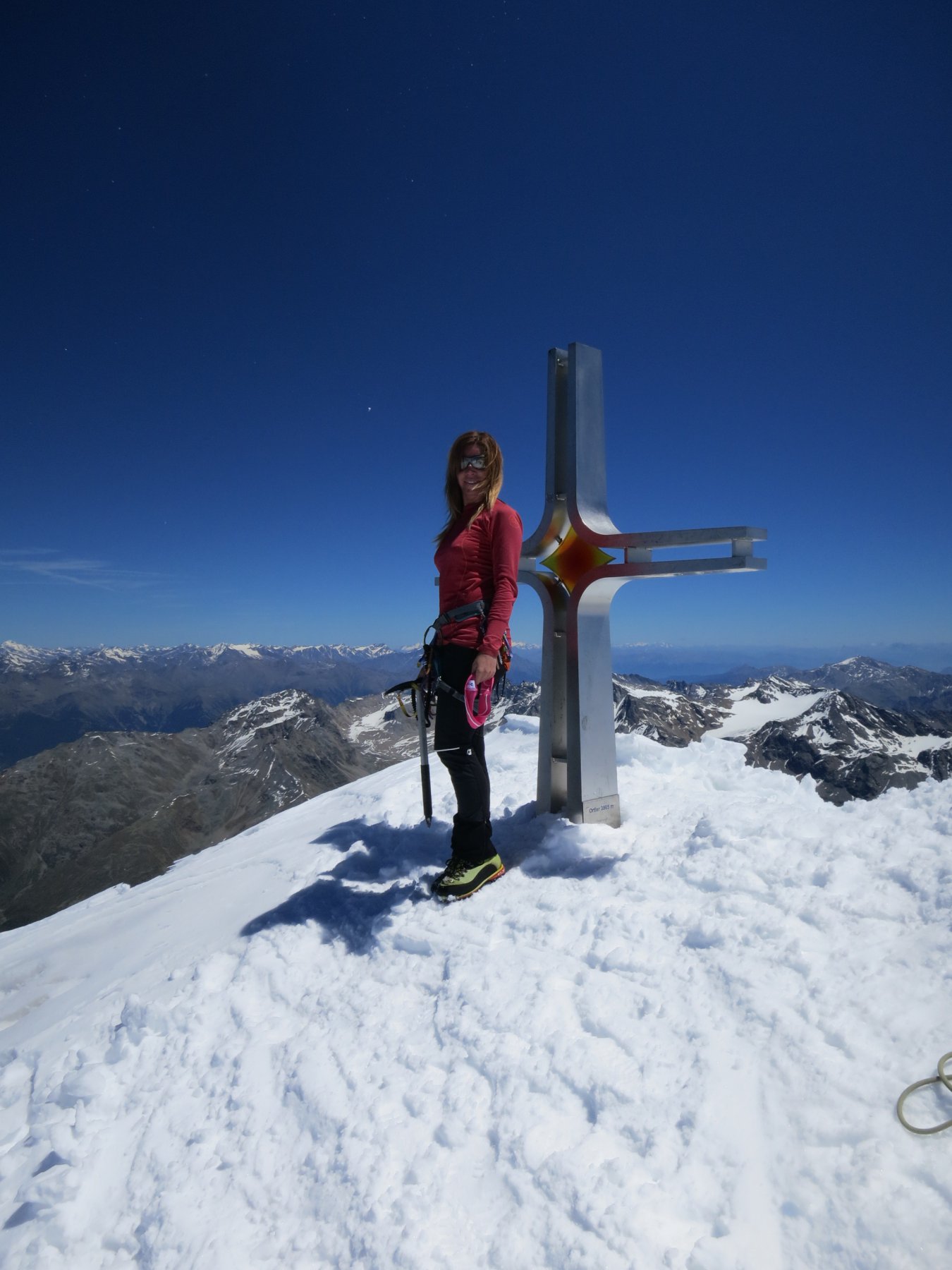 Discesa per la via normale, su neve marcia. Ieri c’erano poche persone, con noi sei sul Coston, a vedere le peste forse qualcuno anche dalla normale. Quindi niente tempi eterni di attesa sul tratto chiave della discesa, la crestina di roccia. Anche sulla via normale poca neve rimasta, ogni tanto qualche chiazza. Tranne gli ultimi metri che portano al rifugio Payer, dopo aver svalicato. Ca. 100 m con neve fonda dove si sprofonda, in parte, con tutta la gamba.