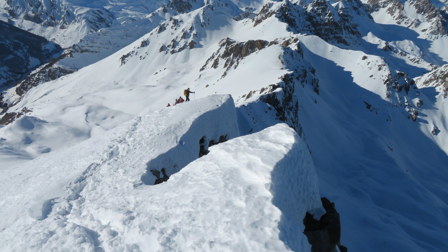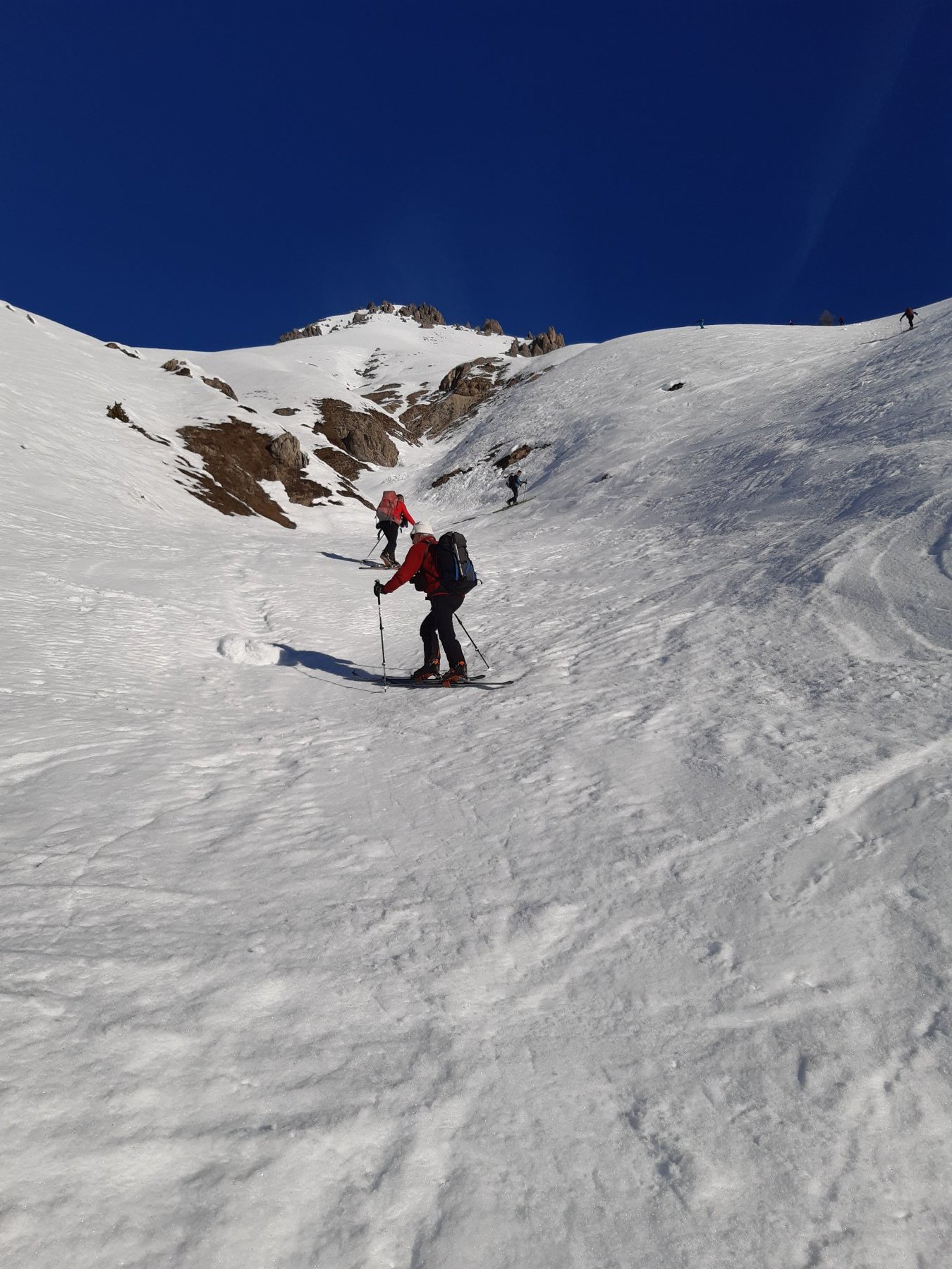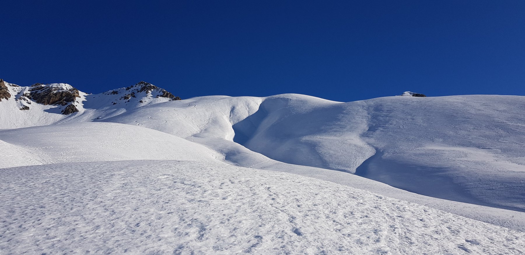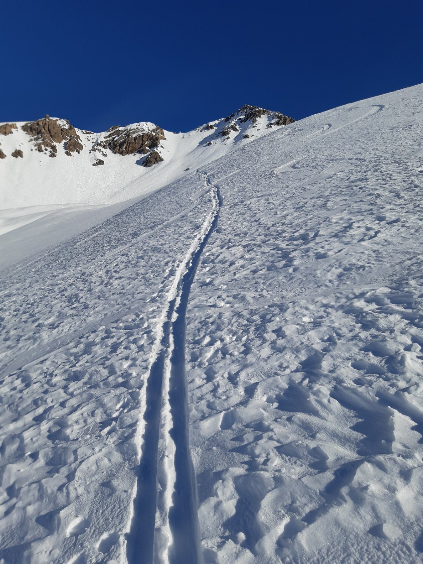 Dalla stazione sciistica Argentera, P. per accesso cabine Enel, Inoltrarsi con un diagonale verso una rada pineta puntando ai ripidi pendii che adducono alle pendici de Il Bric .Salire i pendii alquanto sostenuti portandosi in un concone superiore più dolce qui piegare decisamente dx e raggingere l’anticima.