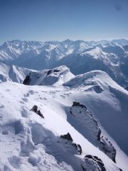 si parte con gli sci ai piedi. Parte bassa neve parzialmente trasformata,soprattutto pendii più ripidi; in alto neve varia, più ventata. Crestina finale (foto)percorribile anche senza ramponi, ma è meglio averli.