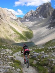 Dal passo gardetta a dx verso passo ROCCA BRANCIA MT 2500 su single track pedalabile ma porre attenzione al pietrisco e all’esposizione,dopo il passo tenersi a dx su seniero franato all’inizio con portage poi superati tre tornanti in sella MTB si giunge al PASSO OSEROT mt 2640,dal colle scesi di 50 mt proseguire sul sentiero a dx del colle perdendo quota di circa 100 mt di disl(tutto portage) porre molta attenzione al tratto PASSO OSEROT ,PASSO CROCE PER LE NUMEROSE FRANE PRESENTI SUL PERCORSO E PROBABILI RIMASUGLI DI SLAVINE(soprattutto durante il primo tratto della discesa dal colle oserot),questo tratto e praticamente poco pedalabile…. portage 95% MTB’5%.