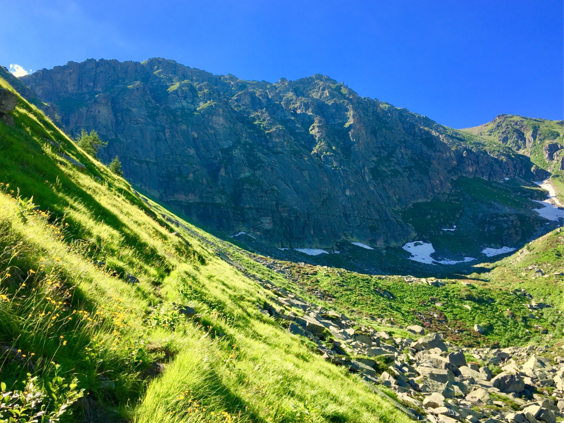 Dalla cava, seguire verso Ovest, un sentiero pianeggiante che si inoltra nel vallone che porta ai piedi della parete (45 minuti di marcia)
