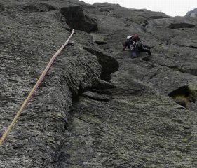 Bella, roccia perfetta, ostica la parte iniziale del camino; possono servire friends medio-grandi. Terminata con gli ultimi tre tiri di Toccata e fuga, fatta molti anni or sono.