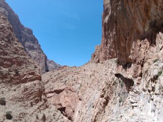 Bella via che segue una linea molto logica, di carattere sportivo nei primi 6 tiri e più alpinistico nella seconda parte dove si integra sempre bene con i friend (noi ne avevamo alcuni di misura media). Avvicinamento da Taghia in circa un’oretta su comodo sentiero un po’ esposto, il passaggio berbero è spettacolare! Attacco con nome alla base, noi abbiamo iniziato a scalare alle 7.30 con temperature gradevoli. Discesa ben segnalata con ometti e doppia abbastanza semplice da trovare sotto ad un masso. Una volta al colle siamo scesi nel vallone di salita e quindi in breve all’attacco. Bellissima giornata in ottima compagnia con Fabietto e Simo!