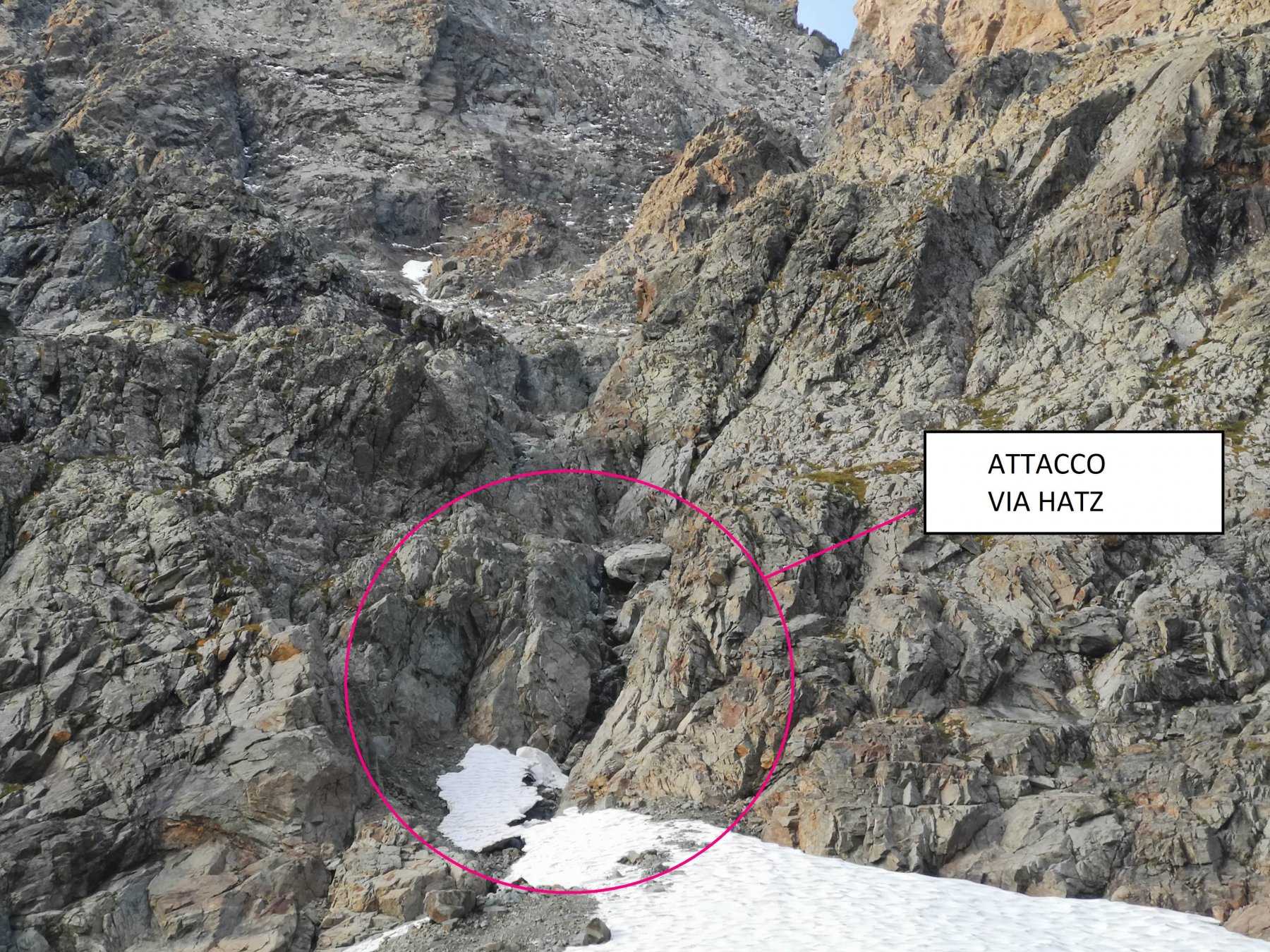 Dal bivacco Gandolfo (dove è possibile pernottare, ottime condizioni), si sale puntando verso ovest-sud-ovest per vaste pietraie lungo la base della Costa Piana, andando così ad imboccare il profondo canalone che scende dal Passo del Canalone Rosso. Risalirlo fino al punto dove, a sinistra (sud), confluisce il canale scendente dal Colletto d’Ovarda (tra punta centrale e occidentale). Salire il canale prestando attenzione alla possibile caduta pietre. (In alternativa al canale, poco metri più a sinistra dello stesso, si trova l’attacco della Variante Ferreri, più difficile ma anche più protetto rispetto alla caduta di pietre). Superato il canalino il pendio diviene più dolce e si avanza sempre in direzione Sud, puntando al colletto d’Ovarda, fino a che non si giunge nella fascia centrale, alcuni metri prima di una grande roccione che sbarra il canalino. La fascia centrale è caratterizzata da ampi pendii ghiaiosi, la si attraversarla da ovest a est sfruttando, per quanto possibile, i glacio-nevai presenti che evitano il movimento degli sfasciumi, fino a giungere alla base del ripido crestone roccioso che sale alla vetta. Superato il primo tratto con difficoltà maggiori (III), si sale poi con facile arrampicata e nell’ultimo tratto piegare lievemente a sinistra e per un canale in modo da uscire pochi metri sotto la vetta, trovando subito alla propria sinistra la punta centrale (3075 m) con il grande ometto.