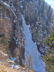 Salto principale fatto in 3 tiri con soste su ghiaccio. Buona presenza di ghiacciatori ma senza darsi troppo fastidio. Attacco comodo. Uscita a piedi.