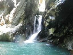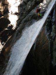 Acqua un pò freddina, ma dato la limitata lunghezza si riusciva a sopportare bene.In conpenso ci siamo scaldati all’uscita facendo il ripido sentiero per ritornare all’auto lasciata al ponte superiore.Alcuni resinati sono danneggiati dalle piene ma con alcune fettuccie sono ancora servibili. Visionato anche il Bouro ma ha ancora troppa acqua sulla calata finale .Quella che si vede sulla sinistra della foto probabilmente è quella che scarica la centrale a monte (vedi foto).
