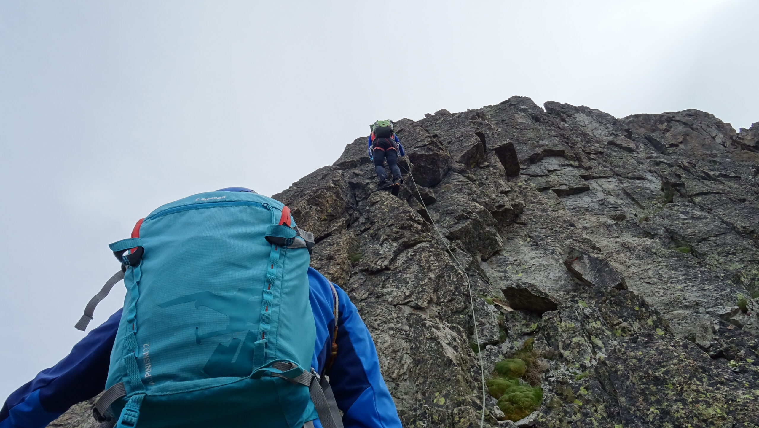 Avvicinamento veloce e solo nell’ultimissimo tratto agevolato da un nevaio (neve morbida). Lo sperone è evidente salendo poco dopo il rifugio ma poi una volta che si è sotto la parte bassa non è così evidente: occorre salire sulle roccette con un po’ d’erba a dx del grande diedro che segna tutta la parete SW della Paganini. Da lì in poi impossibile sbagliare e percorso quasi mai obbligato, fattibile tutto in conserva più o meno corta e/o protetta. Roccia sana con un po’ di roba appesa nel primo terzo, poi terzo centrale su ottime placche molto divertenti e infine ultimo terzo con roccia più marcia in una specie di grande diedro-camino. Come materiale ci si protegge sempre bene dove si vuole, utili quindi a discrezione nut, friend vari e cordini, sufficiente una corda da 30m. Discesa ravanosa fino al canale dove una salvifica lingua di neve ci ha permesso di scendere in modo divertente e diretto fino al sentiero del p.so dei Detriti.