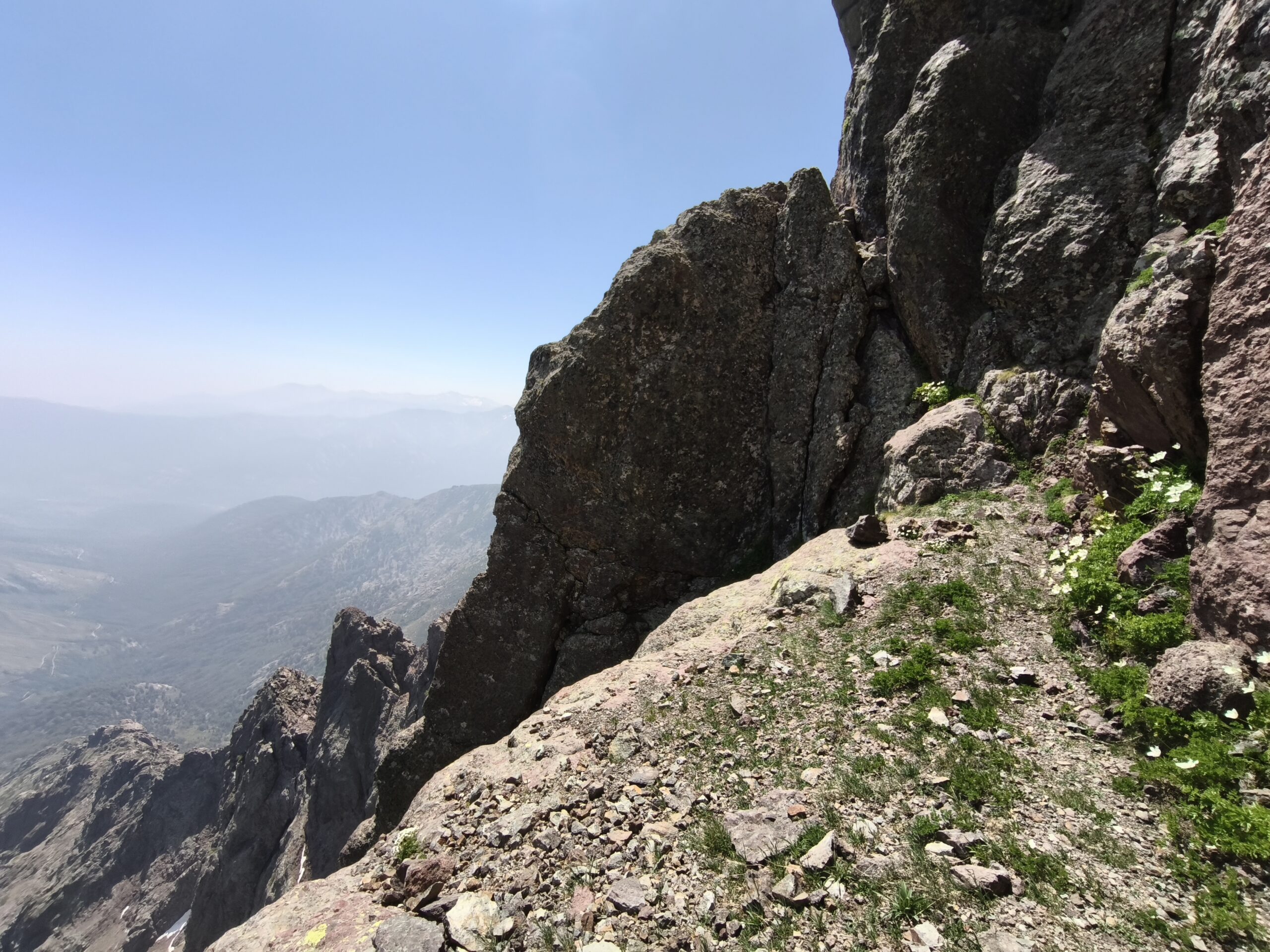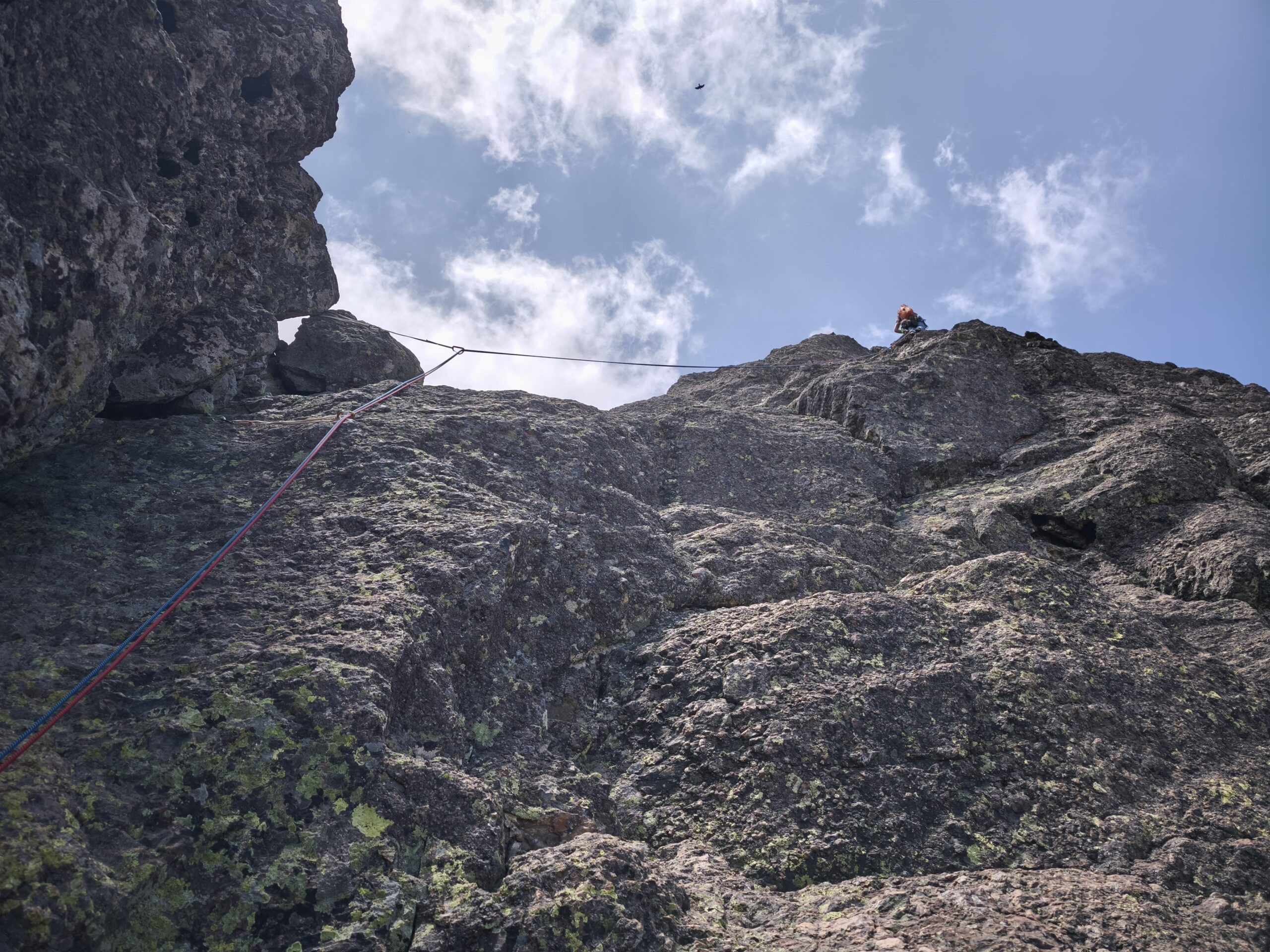 L8: Salire il camino fino alla Breche du Anglais. Da qui salire la cresta leggermente verso destra fino a raggiungere una zona più appoggiata. Sosta da attrezzare. (45m, IV)