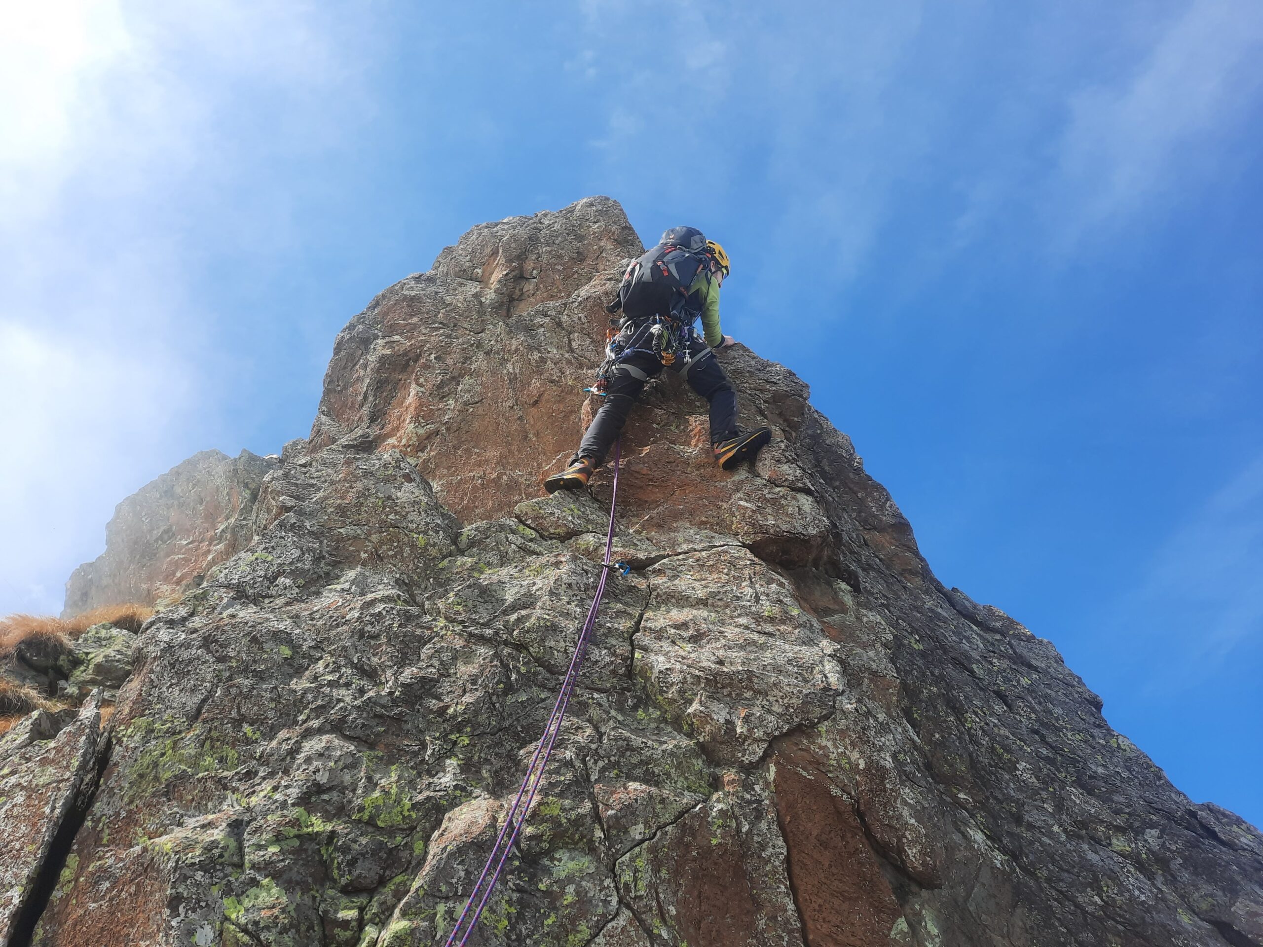 Tutto come già detto, passaggi obbligati belli lisci, da prestare attenzione. Personalmente la parte più ostica è stata la placca per arrivare alla calata del secondo picco (sotto la foto commemorativa). Dopodichè per salire in cima al terzo picco, abbiamo affrontato lo spigolo seguendo 3 chiodi. Sarà una variante? Sicuramente non era II+ ma almeno un bel III pieno ed abbondante. Se qualcuno lo sapesse mi scriva in privato, sarei curioso di saperlo!