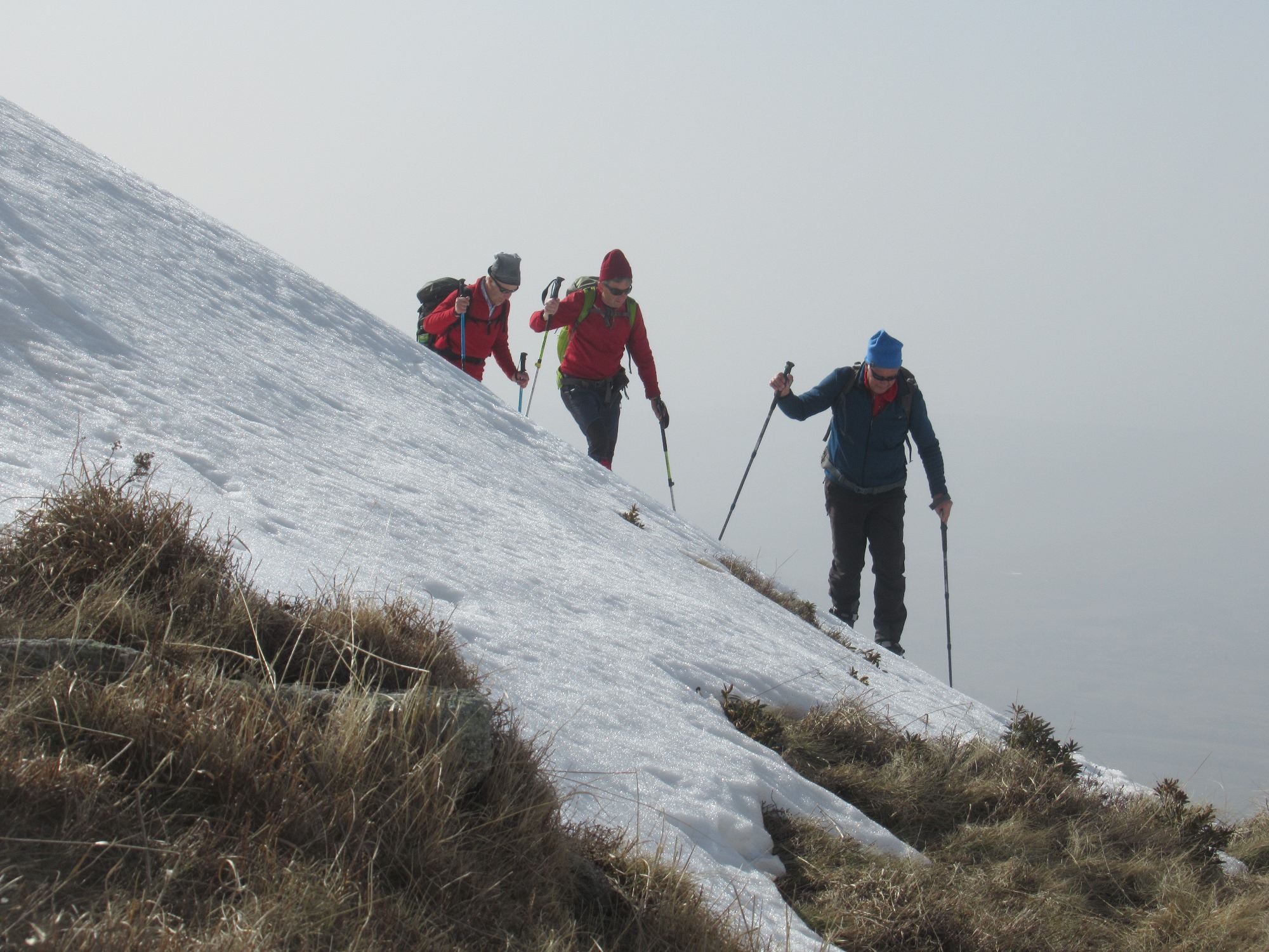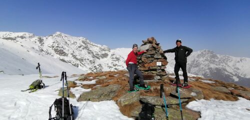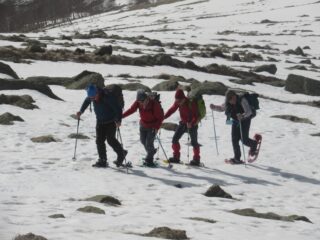 Bella ciaspolata al Bric Paglie. Trovato neve da Pian Bres e calzato le ciaspole poco dopo. Seguito il sentiero estivo (tracce e segni). Giornata bellissima ma caldissima. La neve era molle (ma per fortuna niente zoccolo). Salita faticosa e impegnativa. Ultimo tratto da fare con attenzione. Con gli amici Gianni, Giorgio, Pier Albino e Sergio.