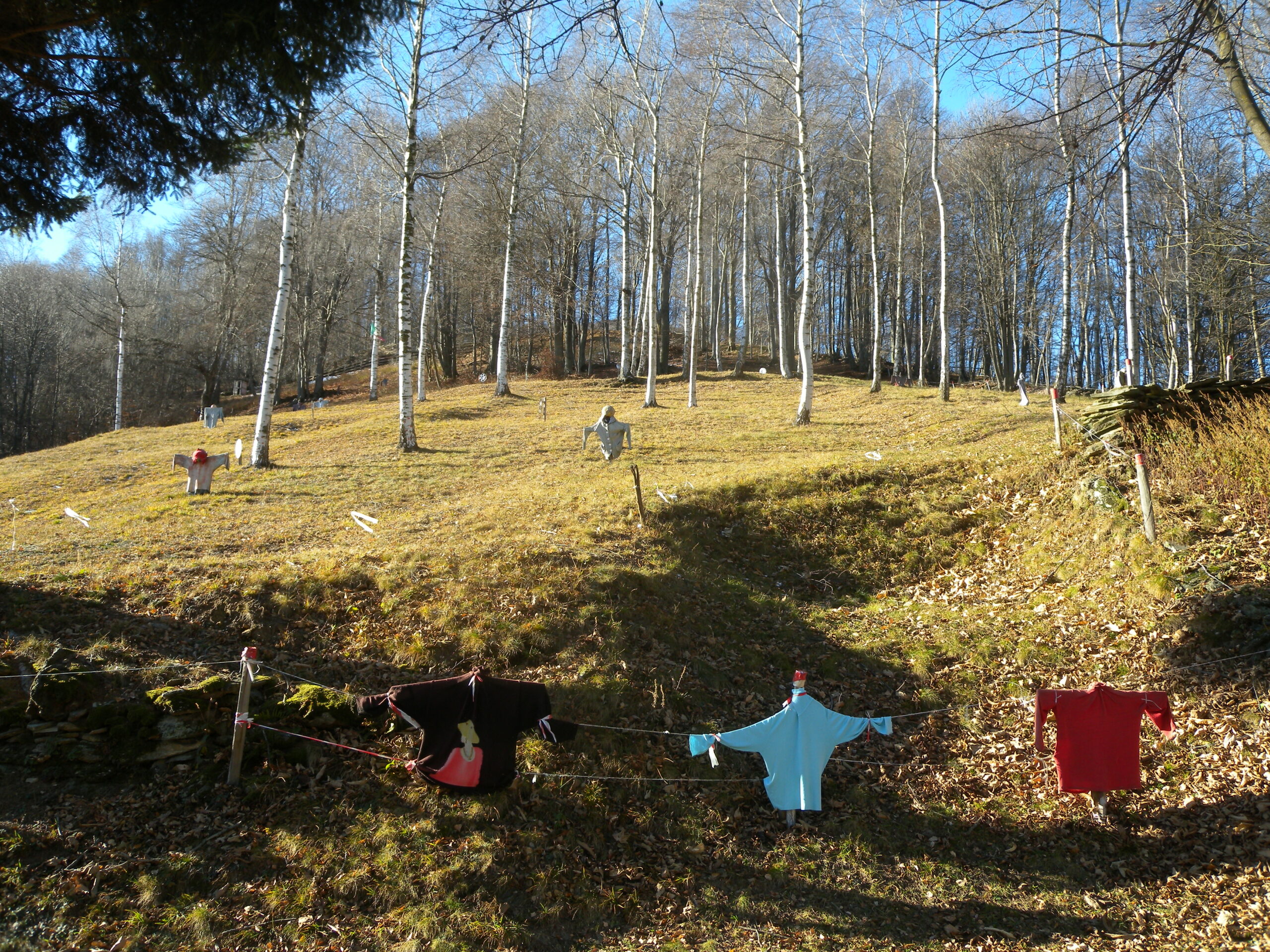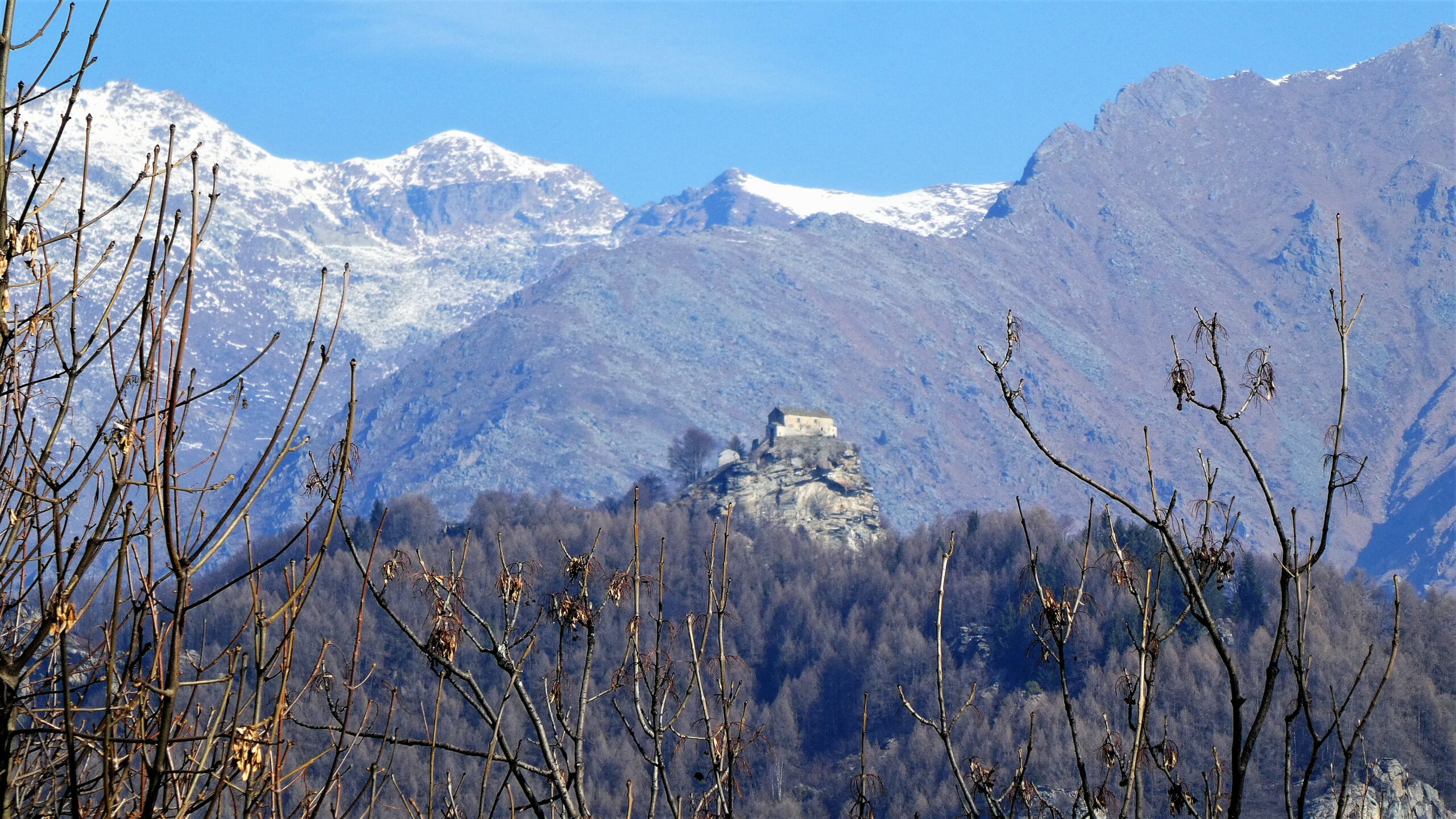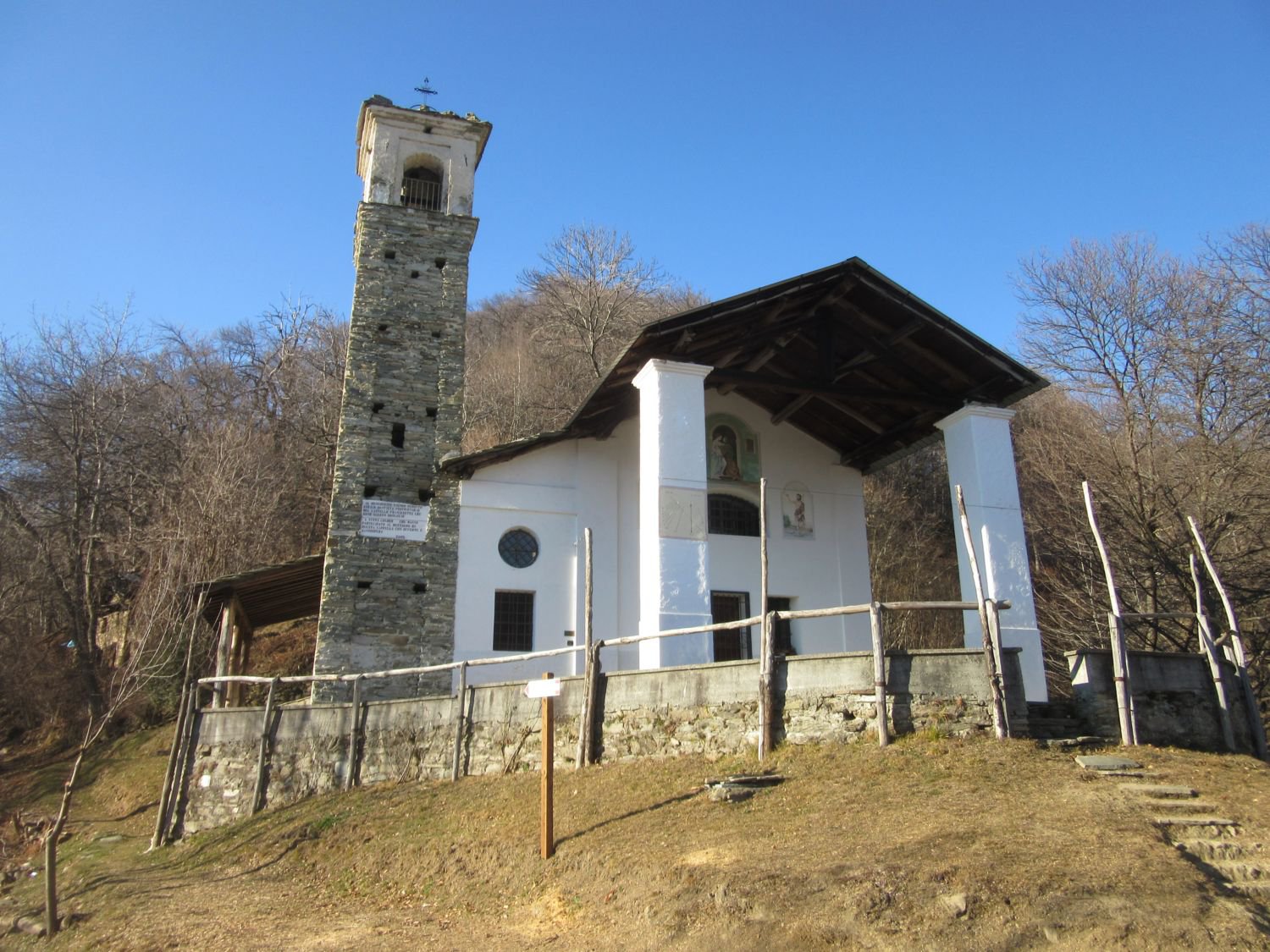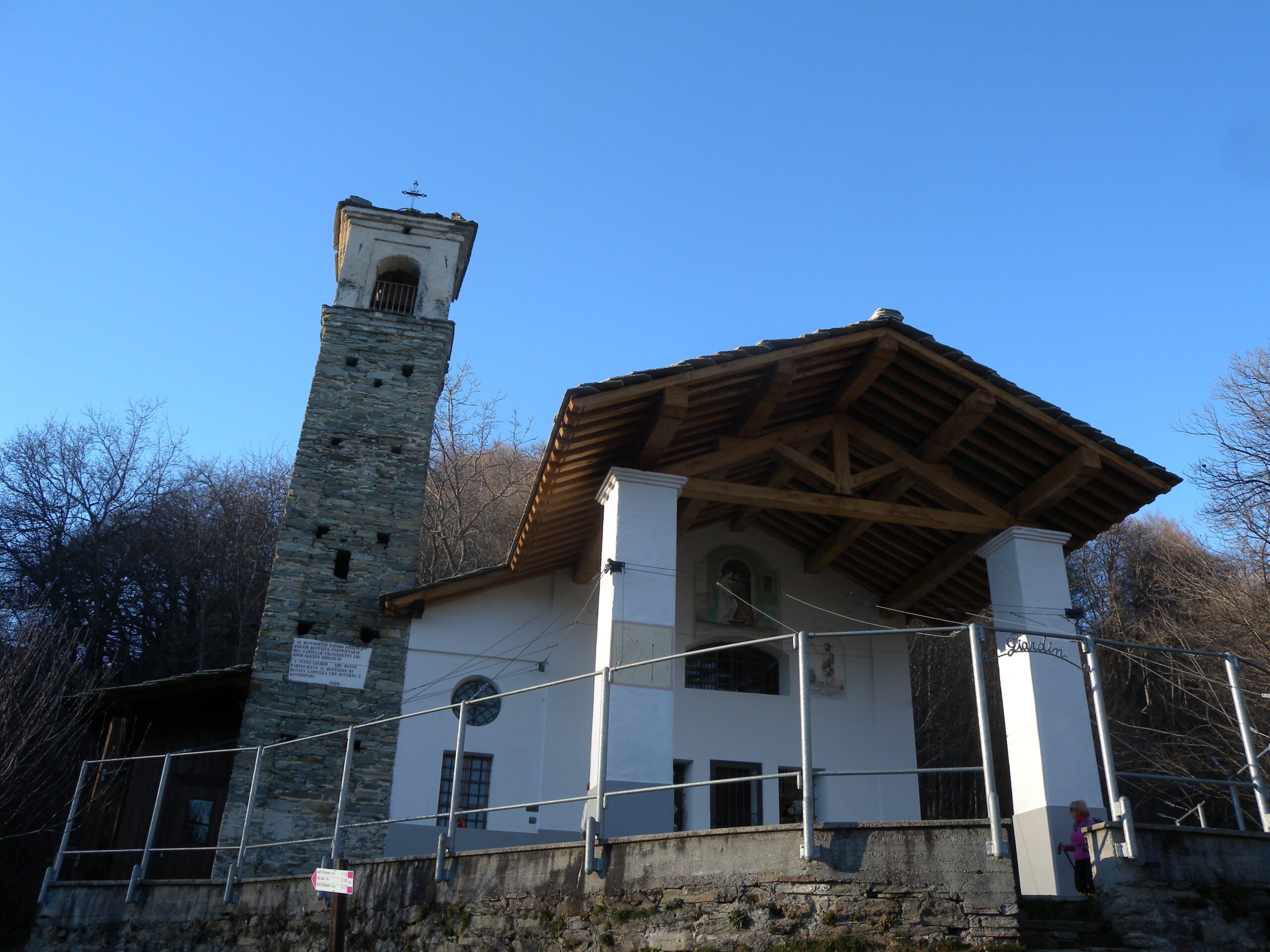 Vi è anche la possibilità di imboccare un sentiero (segnato) che scendendo lungo il bosco si ricongiunge alla strada proveniente dalla Cappella del Giardino. Sempre lungo la strada scendere fino a Mezzenile.