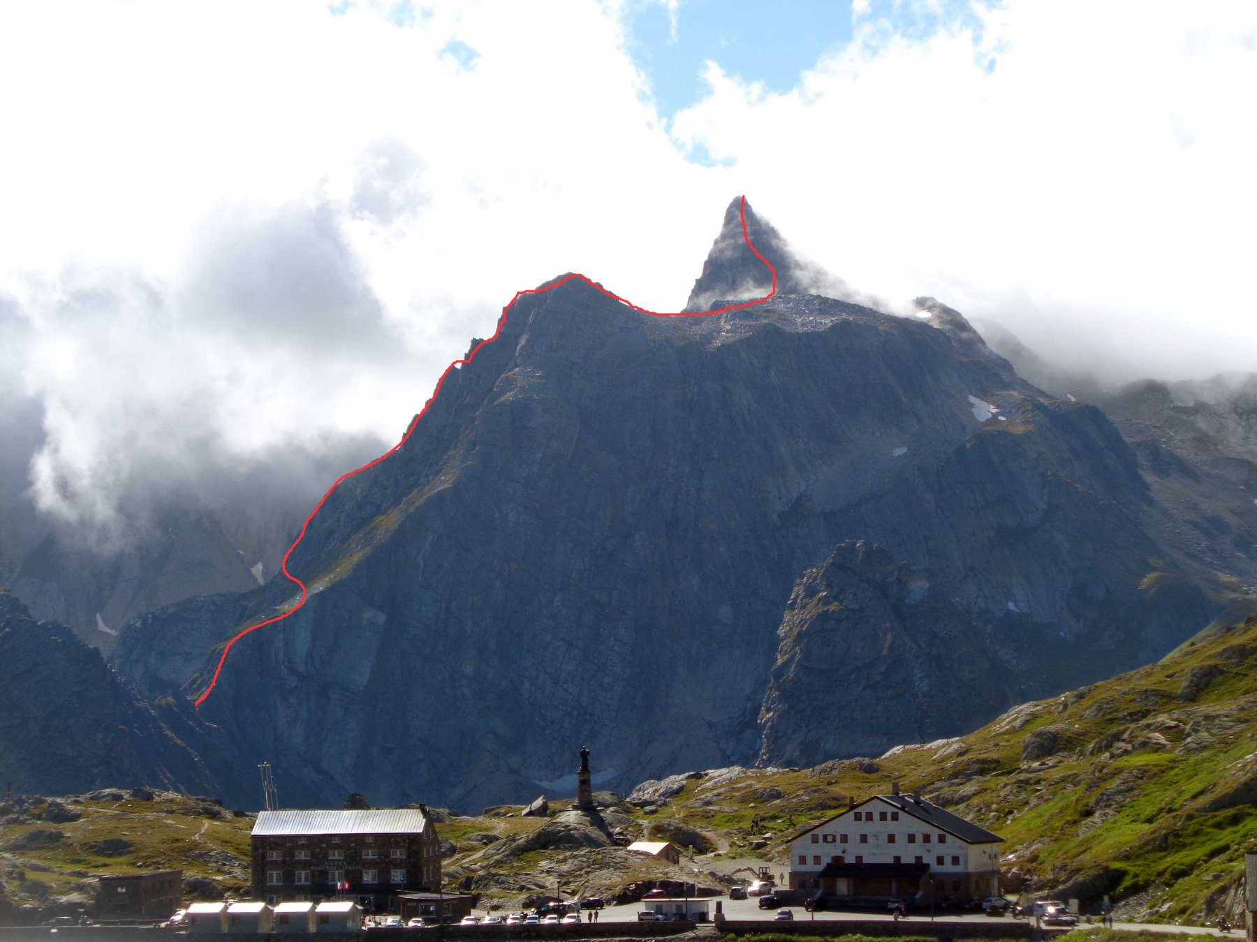 Dopo il primo salto subito sopra il colletto (roccia non bellissima solo in questi pochi metri: fare un pò di attenzione) c’è un pratone: traversarlo e puntare alla cresta in alto a sx ( c’è un ometto dove inizia e si vede brillare qualche spit).