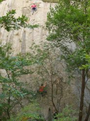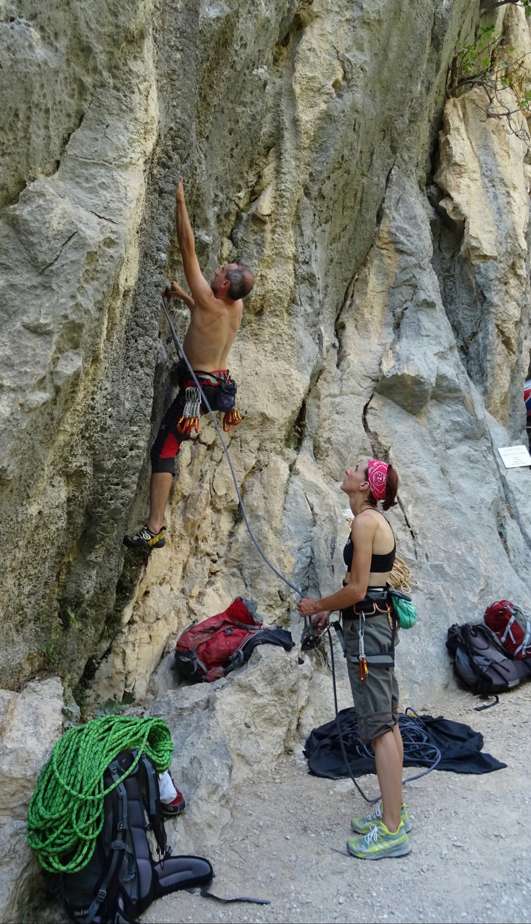 Si è sempre sul calcare verticale, molto lavorato, anche se un po' unto a causa dell'abbondante flusso di climbers.