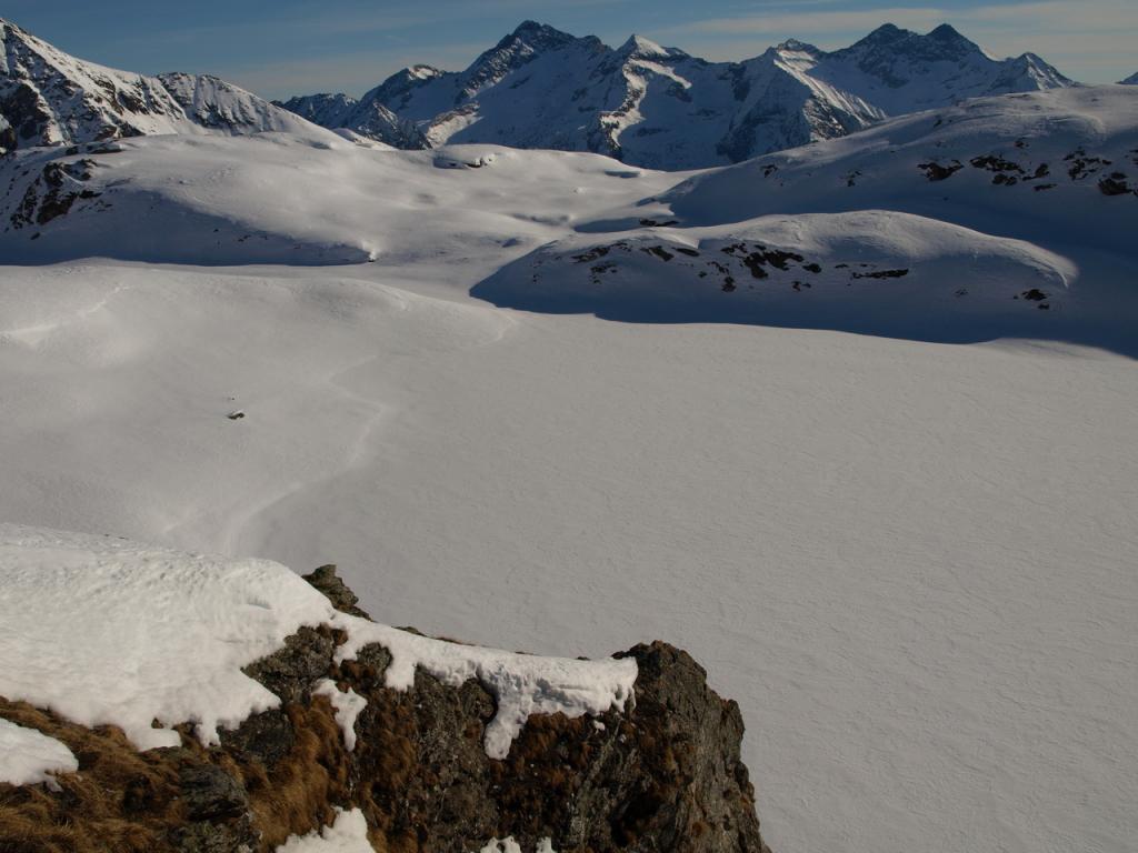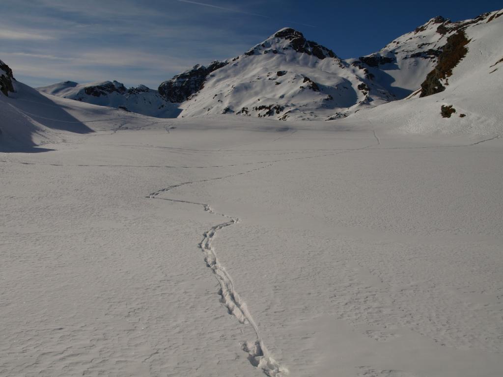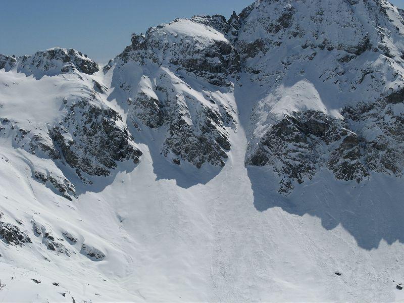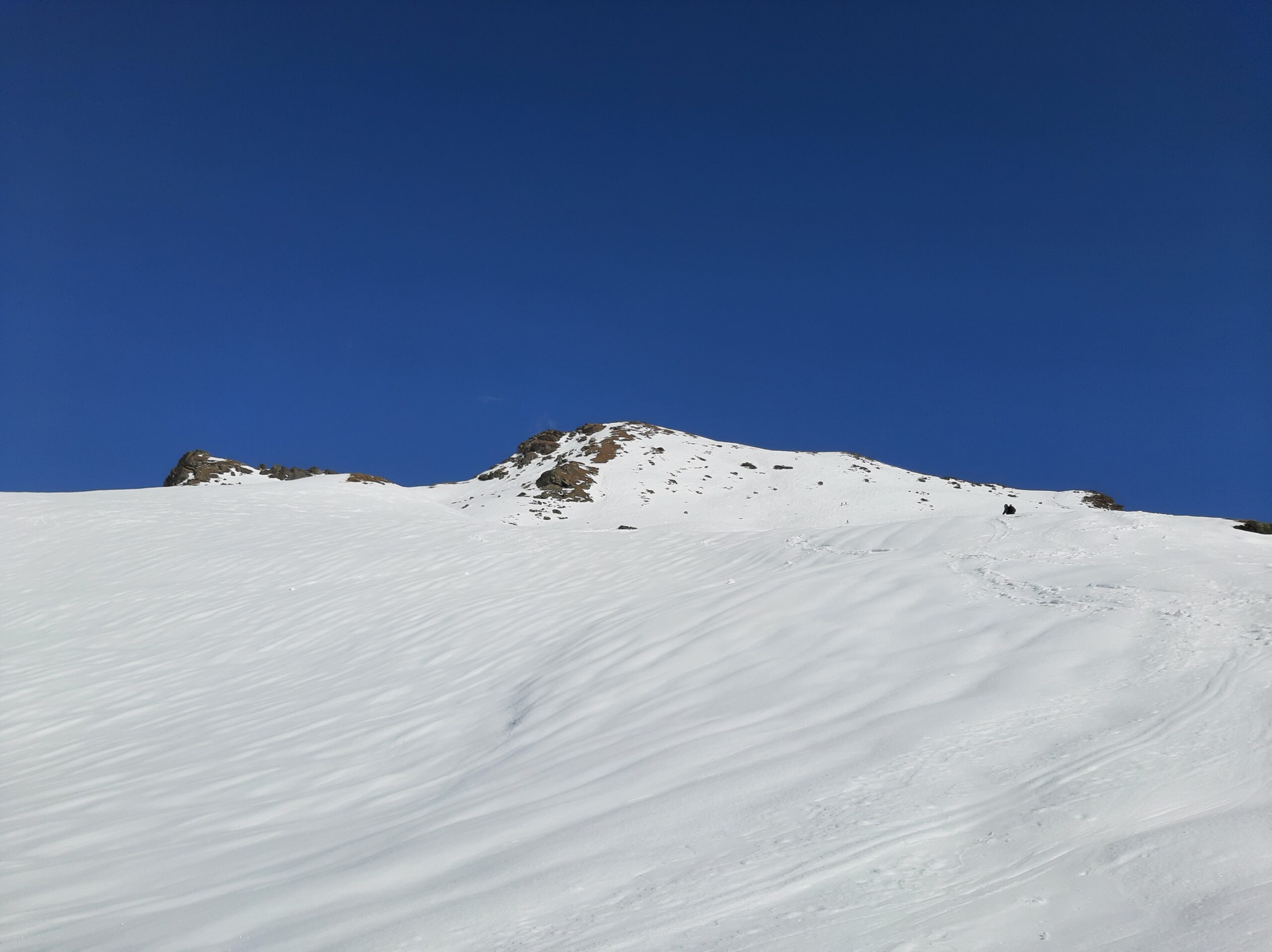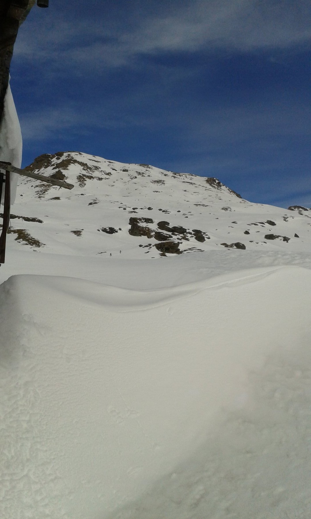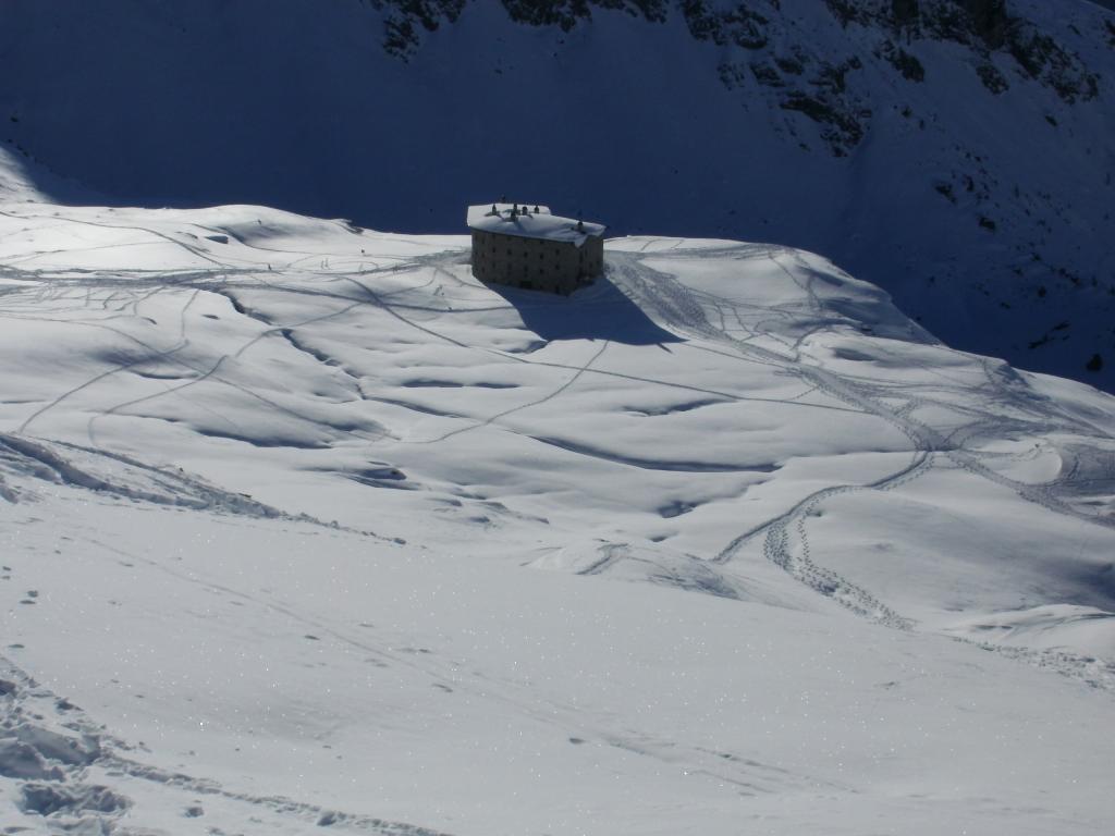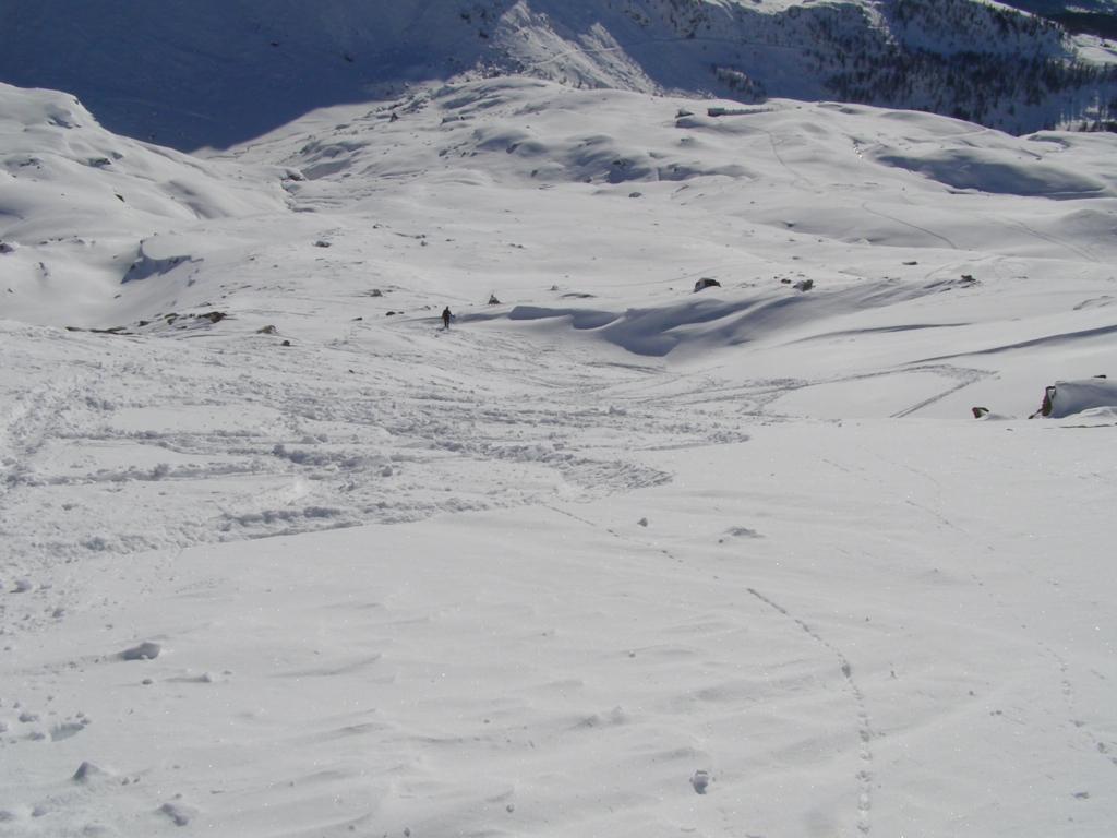 Nella parte mediana si attraversa un pendio soggetto a slavine,bisogna quindi fare attenzione all'assestamento della neve altrimenti si puo' evitare di passarci sotto rimanendo in basso al vallone sotto il rifugio Arp tutto a sinistra salendo in modo piu' sicuro e con pendio meno ripido.