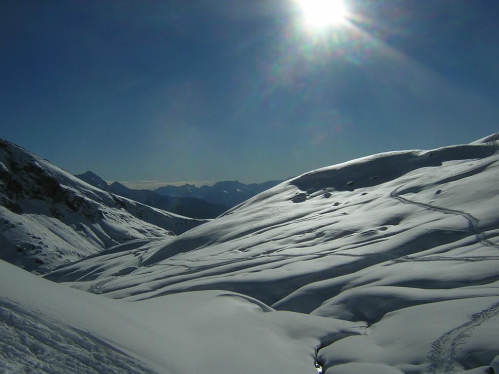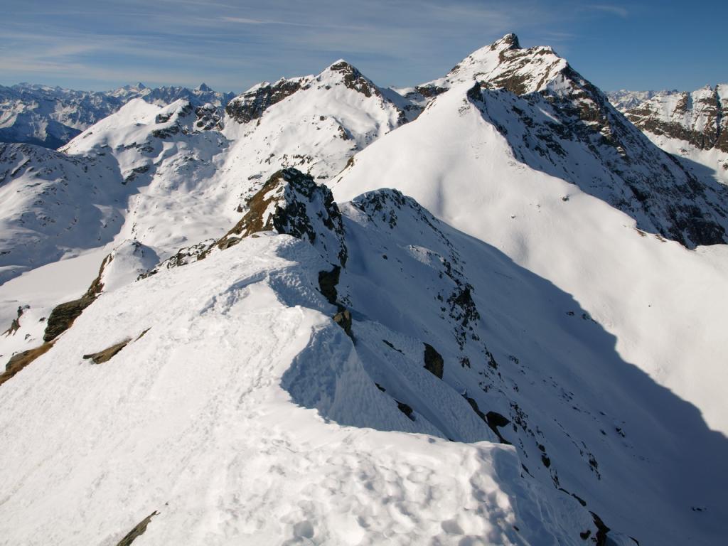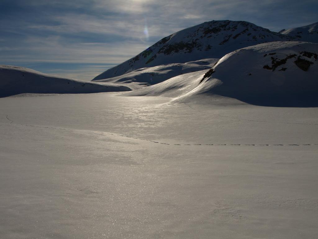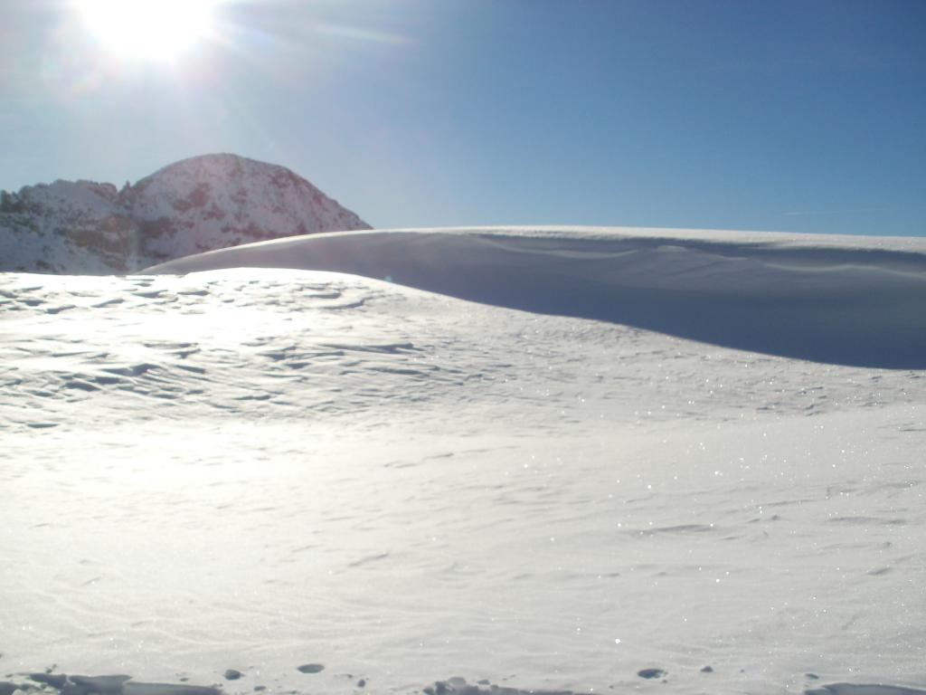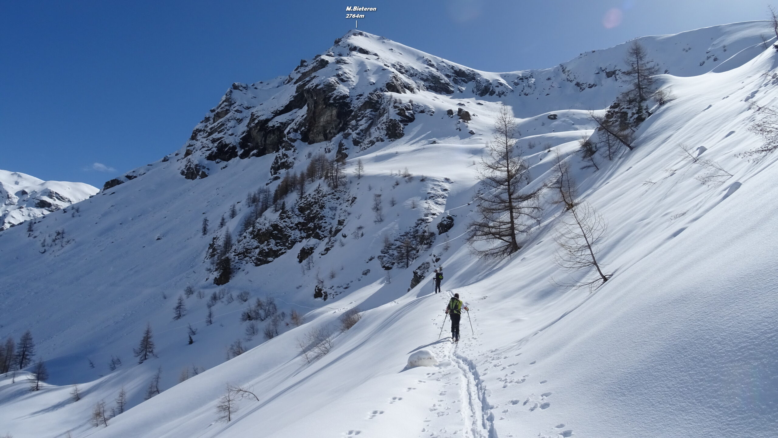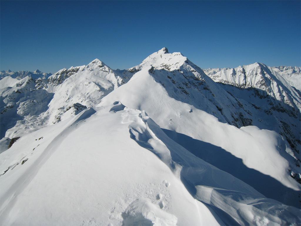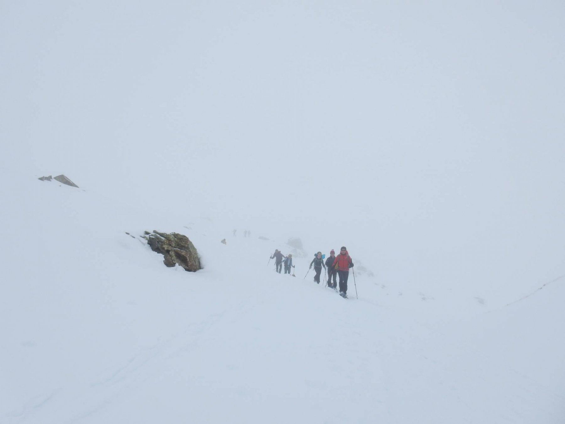 Nella parte mediana si attraversa un pendio soggetto a slavine,bisogna quindi fare attenzione all'assestamento della neve altrimenti si puo' evitare di passarci sotto rimanendo in basso al vallone sotto il rifugio Arp tutto a sinistra salendo in modo piu' sicuro e con pendio meno ripido.