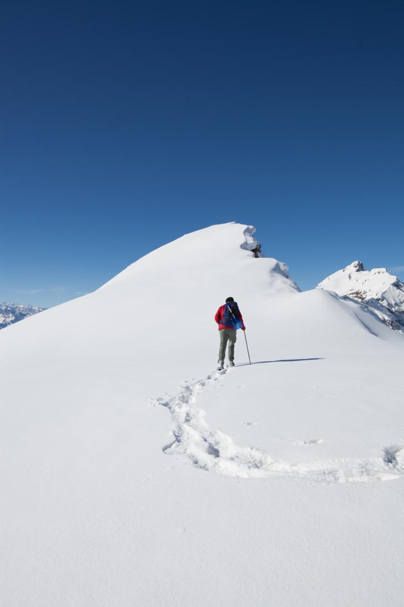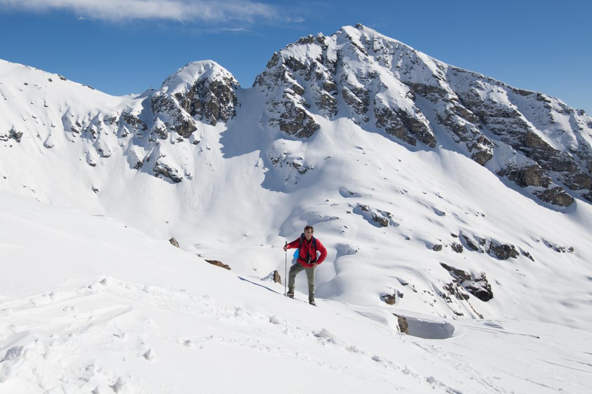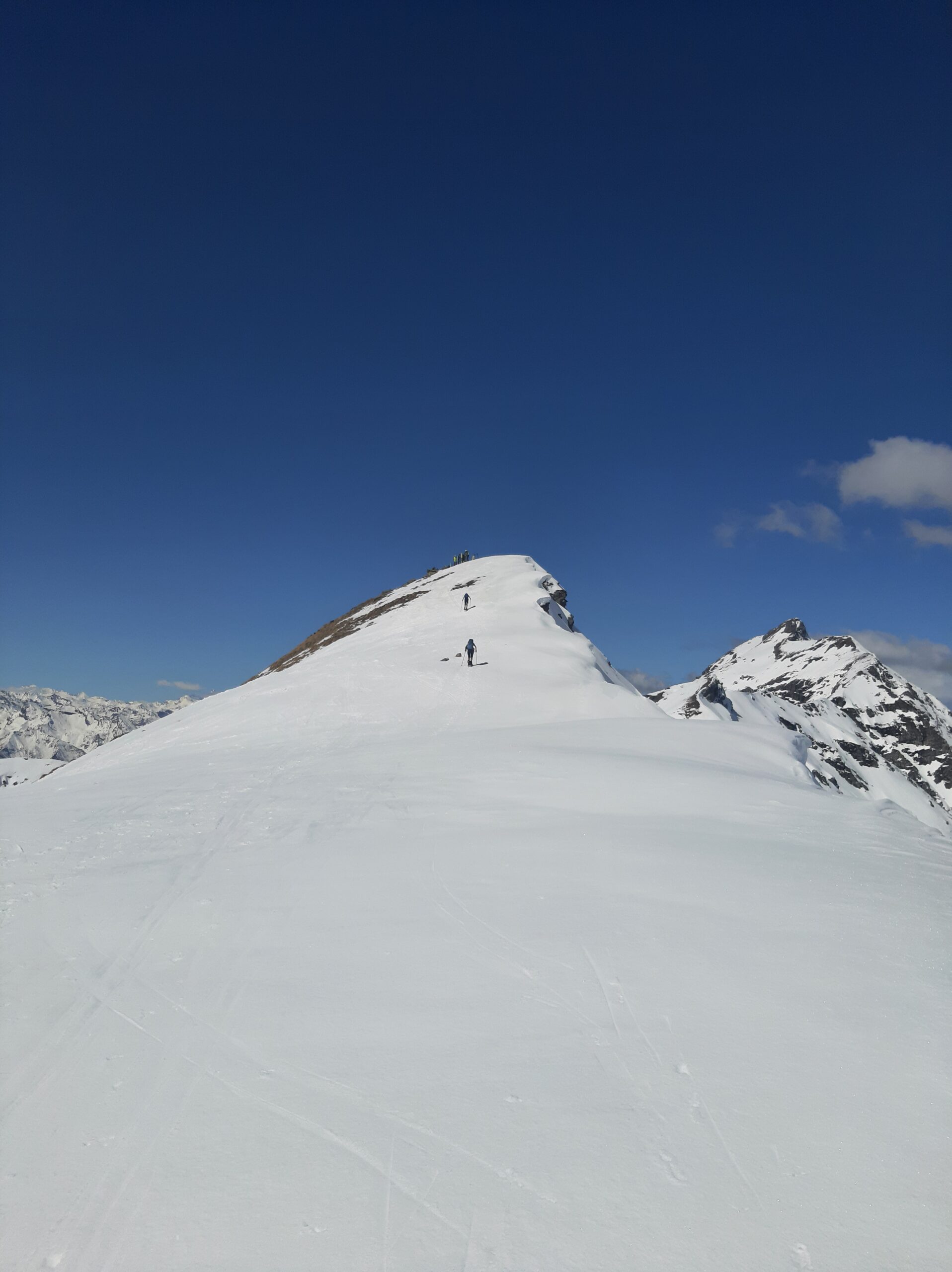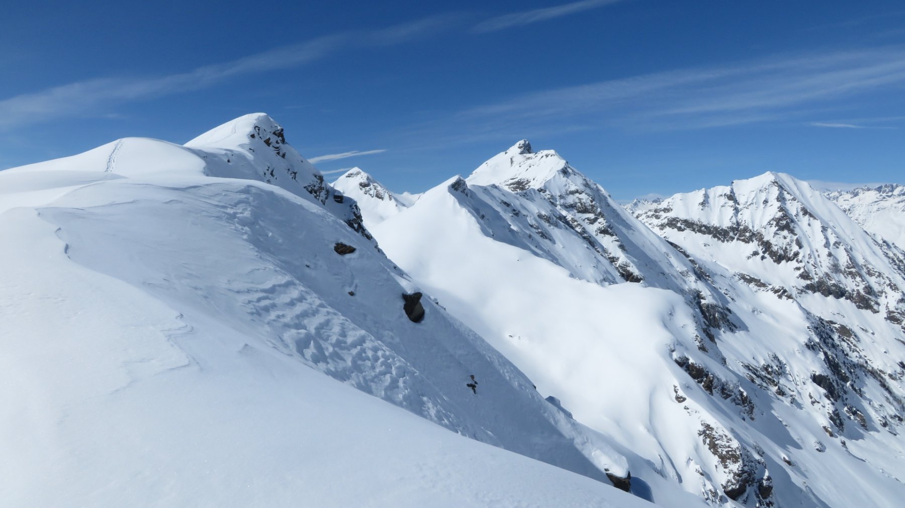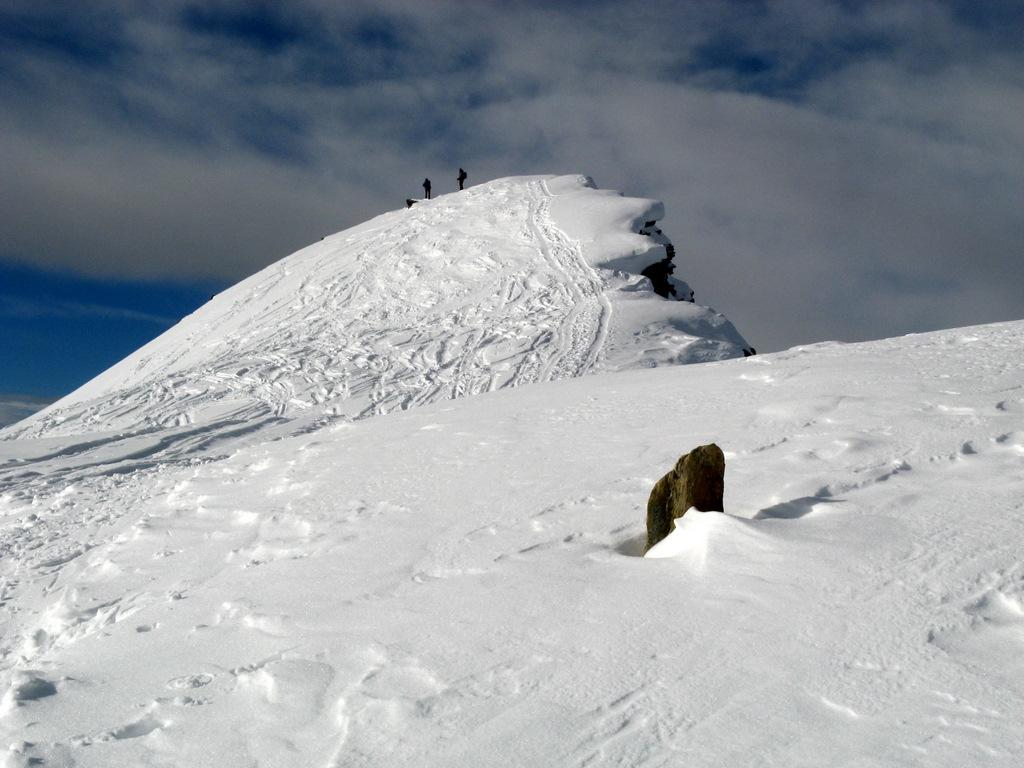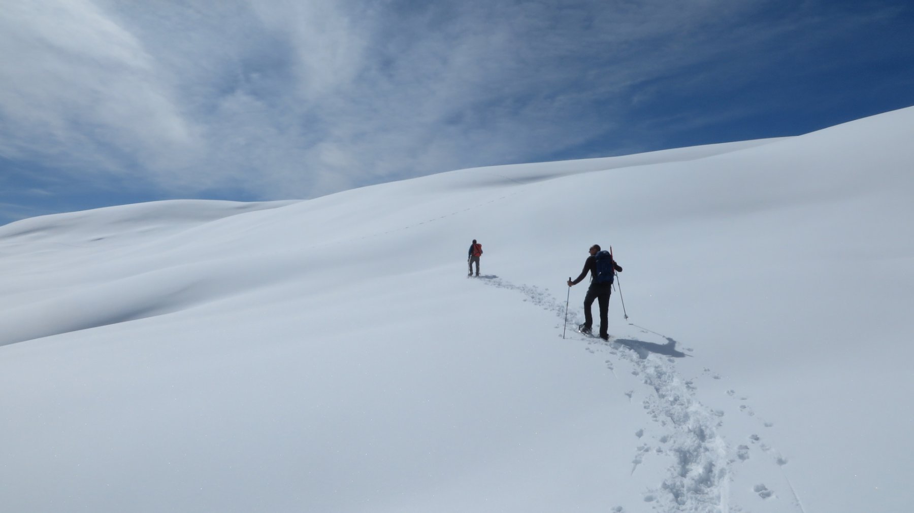 Nella parte mediana si attraversa un pendio soggetto a slavine,bisogna quindi fare attenzione all'assestamento della neve altrimenti si puo' evitare di passarci sotto rimanendo in basso al vallone sotto il rifugio Arp tutto a sinistra salendo in modo piu' sicuro e con pendio meno ripido.