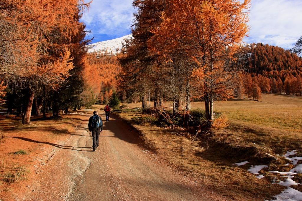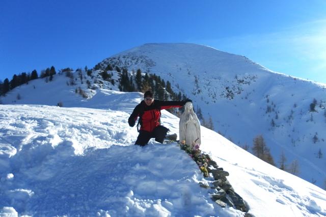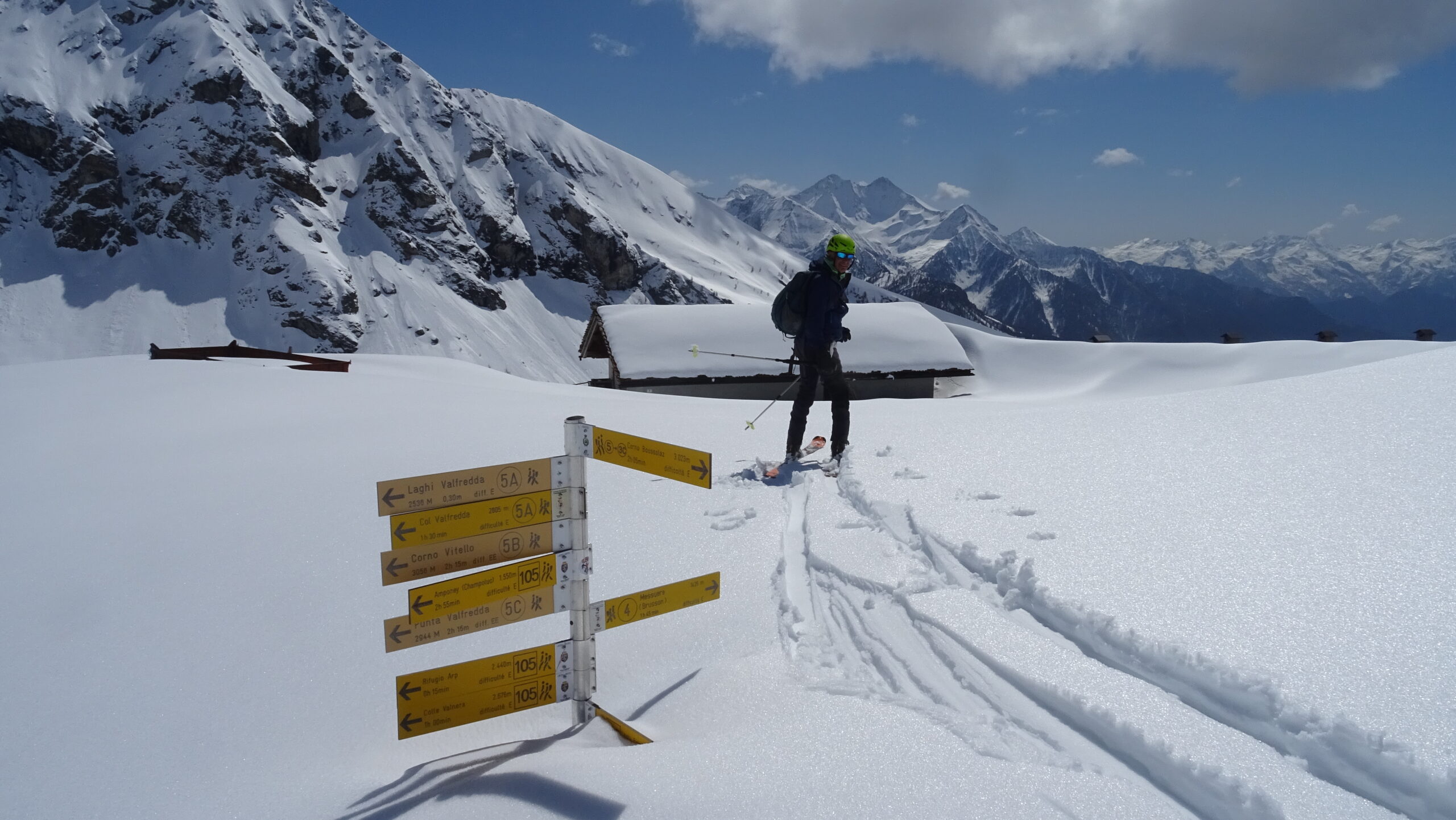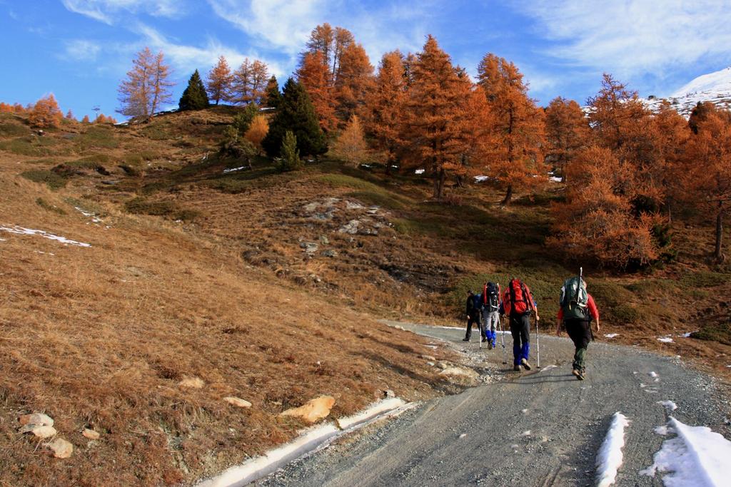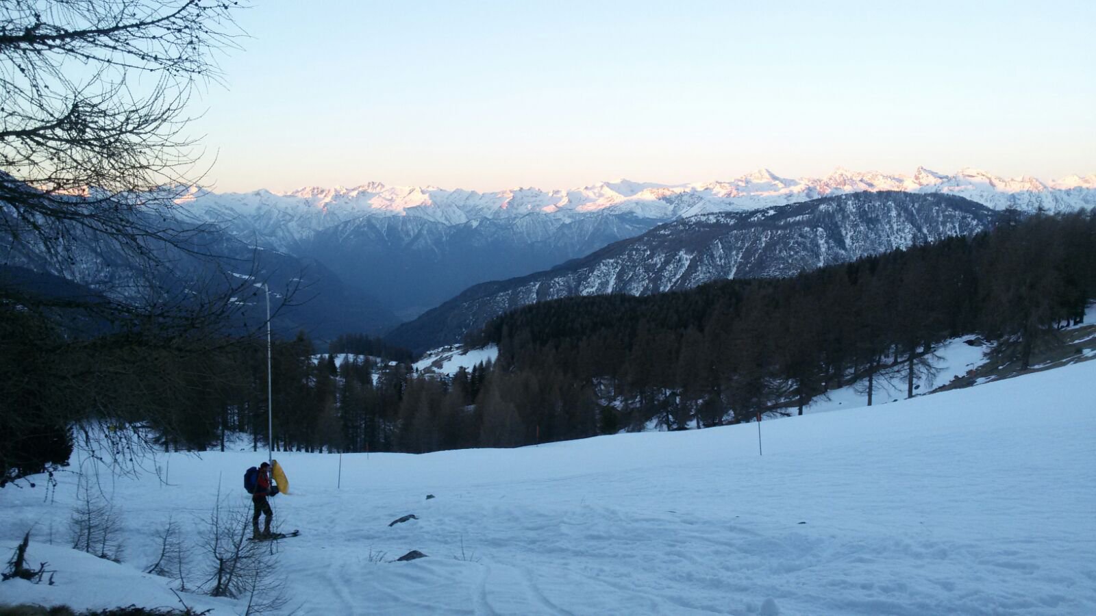 Salire fiancheggiando la pista baby (è quella davanti al casotto della scuola sci) fino al primo casottino di arrivo. Da qui a sinistra fino ad incrociare un’altra pista. Mantenersi paralleli ad essa stando nel bosco. Si incrocia poi una strada (indicazione rifugio Arp) che si percorre a sinistra.