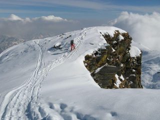 Oggi ferie e si va ai Palit. Lasciata l’auto in prossimità del bivio per gli impianti abbiamo risalito la stradina con vari tagli fino al secondo impianto e poi proseguito, battendo traccia, passando dall’Osservatorio faunistico fino a raggiungere la dorsale nel suo evidente cambio di pendenza. Qui fortunatamente abbiamo trovato una buona traccia di skialp fino alla vetta (ma io sfondavo lo stesso). Dall’anticima alla punta vera e propria c’è un unico passaggio un po’ delicato in discesa su masso scoperto. Bel sole fino a metà giornata, ma con nebbia e nuvole basse al rientro. La nevicata di inizio settimana ha messo 5 cm in basso e 10 in alto su fondo atroce. In particolare nei pendii NO dall’arrivo del secondo impianto all’Osservatorio si faceva zoccolo di 30 cm. su tutta la ciaspola. 1 stella per la neve, 4 per la solitudine.