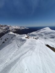 Al momento si parte sci ai piedi dal parcheggio ex impianti, peccato la giornata un po ventosa, neve poco trasformata, salita e discesa per lo stesso itinerario su crosta.
