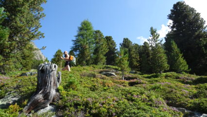 Partiti leggeri dal parcheggio di Gasteiger, risalendo il sentiero ben segnalato tra malghe e boschi di abeti passando alla scalcinata Schlafhäuser 2016m. Da li sempre ottima anti sbaglio, segnalata con segni di vernice e vari grossi ometti. Tratto con breve cavo metallico in ottimo stato, consiglio di non abbandonare i bastoncini… sopra servono ancora. Sbucati ad un pianoro su una sella appare la cima, da qui affrontiamo il panoramico tratto che porta in vetta mettendo mano in certi tratti su roccia, specialmente se si affronta la costola rocciosa. possibilità di evitarla con un sentierino sulla sx. Arrivati alla croce di vetta in circa h.2.30 con panorama a 360° da urlo…di Tarzan su Riva di Tures e Campo Tures.