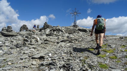 Bella vetta panoramica vivamente consigliata, con percorso piacevole e senza problemi . A mio giudizio la gradazione giusta sarebbe da escursionismo EE+. Fatta con A/R in mattinata, salendo poi nel tardo pomeriggio al Rif.Roma (Kasseler Hütte) per pernotto. In compagnia di Davide.