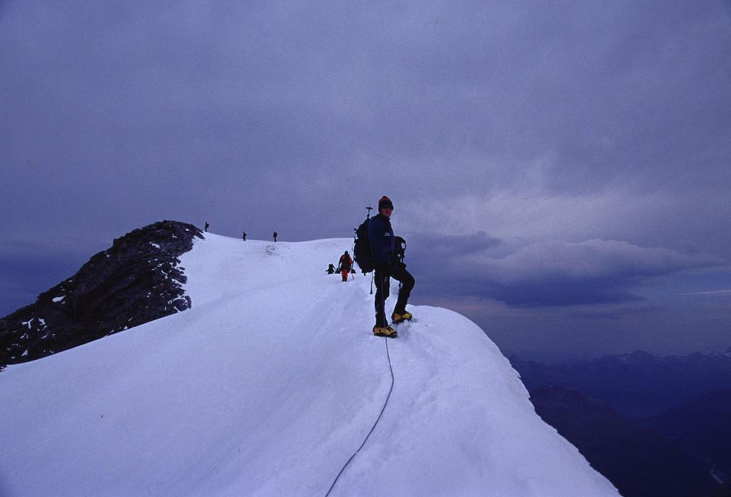 Dopo essere già salito al Pizzo Palù Occidentale e Centrale dal Rifugio Marinelli e dal versante italiano…mancava all’appello ancora il Palù Orientale dalla Diavolezza ! E quindi, sentito Emilio, ci siamo accordati in un attimo e siamo partiti. Arrivati il 21 alla Diavolezza, buona l’accoglienza e la sistemazione….dalla sala da pranzo il panorama sul Gruppo del Bernina è stupefacente…merita un eccellente reportage fotografico ! Al mattino siamo partiti intorno alle 5…insieme ad almeno 80 persone…e ci siamo uniti alla processione…ma si sapeva questo ! Bella salita su ghiacciaio in ambiente glaciale superbo…c’è un tratto del Vadret Pers molto crepacciato e fratturato…sembrava una specie di Ice-Fall nostrano…bellissimo ! Come bella la cresta nevosa finale che ci ha portati in vetta ! Il Ghiacciaio era in ottime condizioni e con la presenza di un pistone che sembrava quasi…un’autostrada !! Peccato per il tempo prima variabile e poi incerto che non ci ha permesso di ammirare un panorama che sarebbe stato sconfinato…ma qualche volta occorre sapersi accontentare ! Comunque, la mia valutazione e la soddifazione resta molto alta…5 stelle !