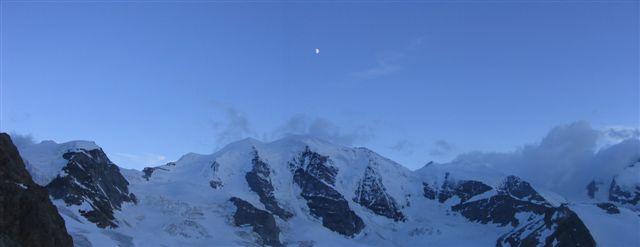 Arrivati sabato al Diavolezza dopo 2 ore e 45′ di camminata: panorama bellissimo sul massiccio del Pizzo Palu e Pizzo Bernina.