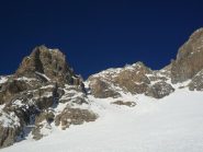 Una volta giunti alla base del conoide si apre a SX l'evidente canale (vedi foto).