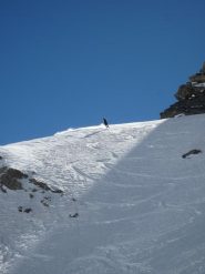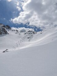 Dal conoide risalire il canale fino al colletto, già visibile dal basso.