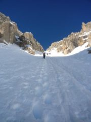 Nel canale: neve ottima nella parte alta e sulle contropendenze(farina pressata). Parte centrale con tratti di neve tecnica a volte più dura e lavorata.