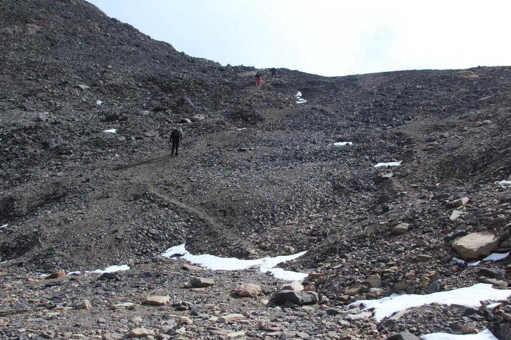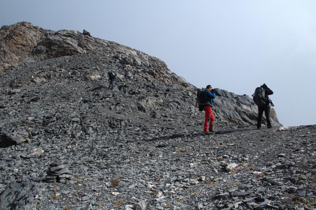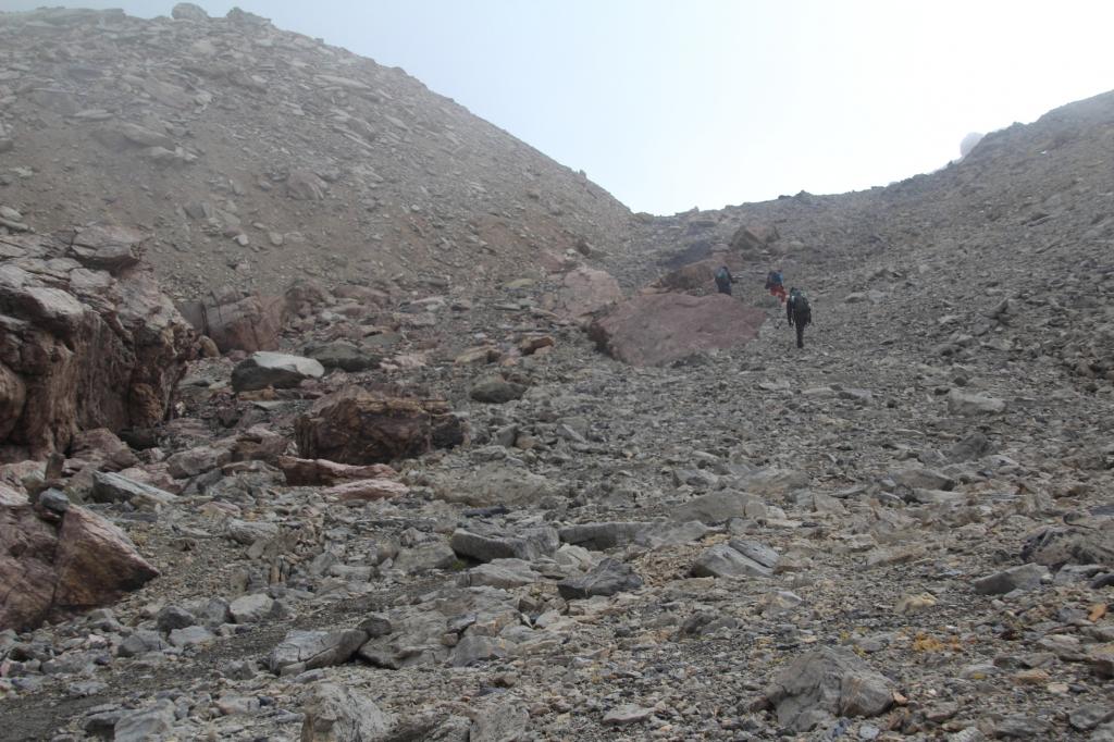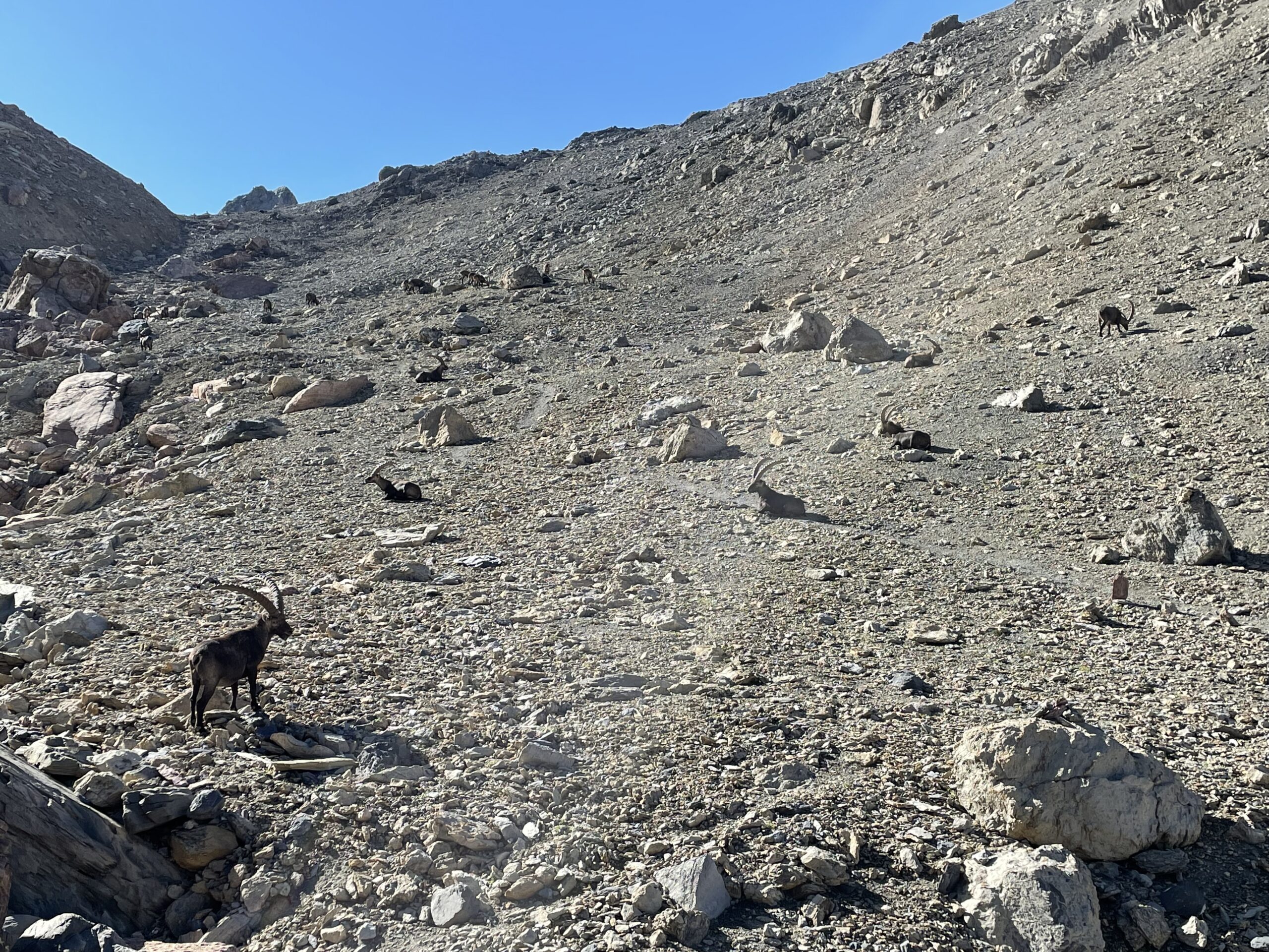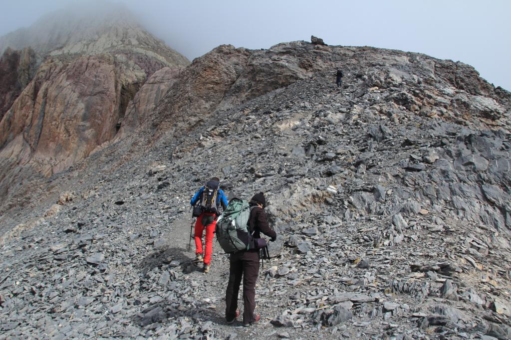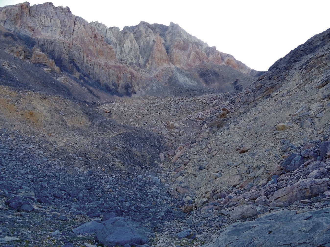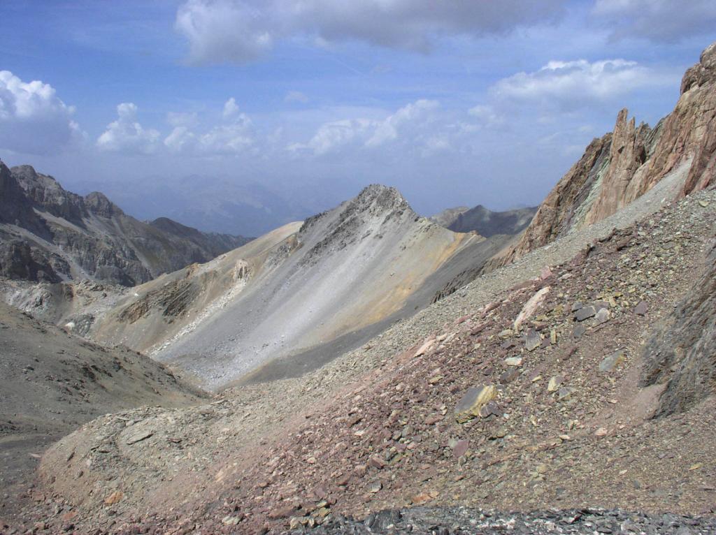 Si prosegue salendo lungo la traccia sempre ben individuabile, aiutati dai numerosi ometti si sale prima al centro del valloncello e poi verso destra puntando alla ben visibile e ampia sella di quota 3040 m. il Pas de la Gavia.