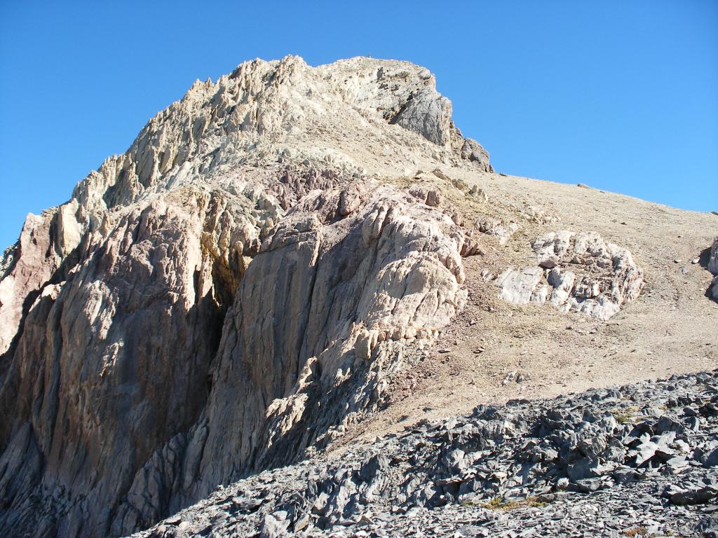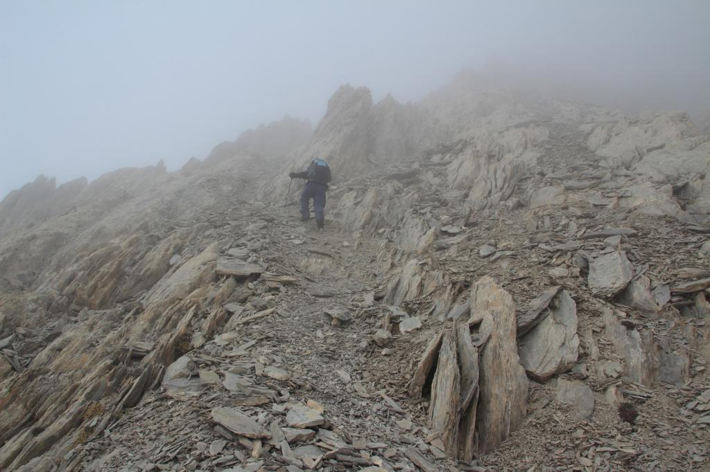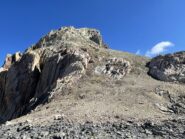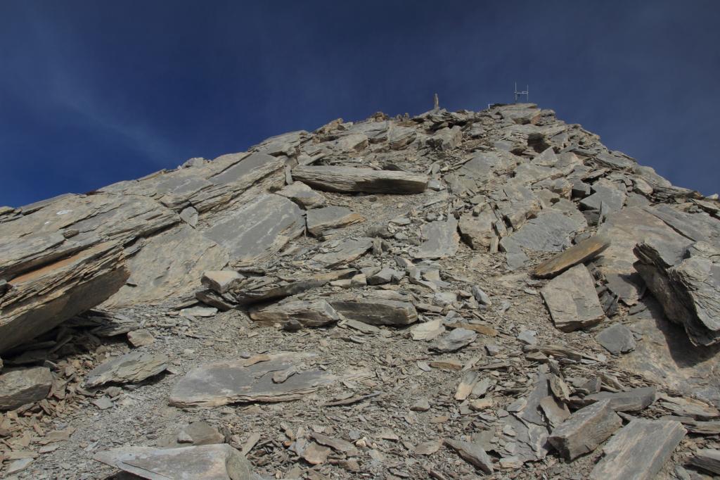 Superati alcuni facili passaggi su roccette, si sbuca ad un piccolo colletto sotto la cima, ben visibile da questo punto. Seguendo una traccia di sentiero che sale la cresta di facili rocce rotte si raggiunge l’orribile ripetitore del soccorso alpino posto sulla cima.