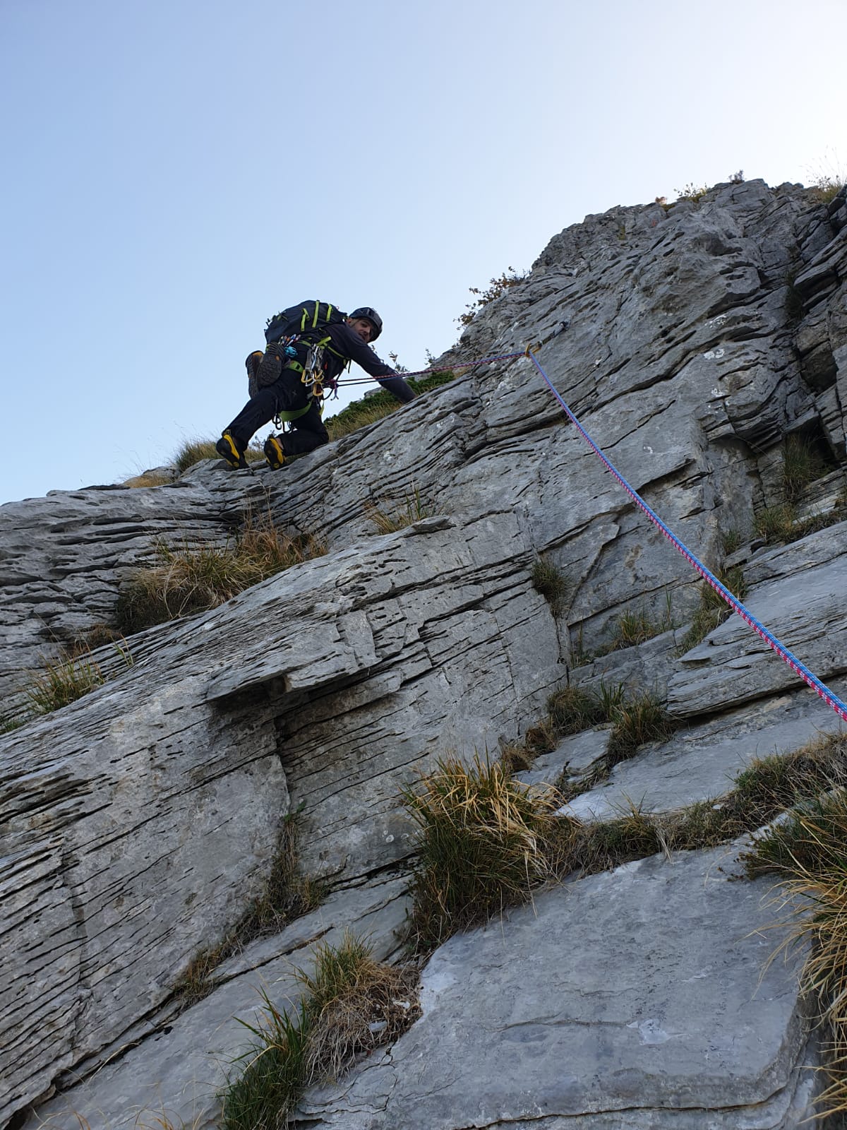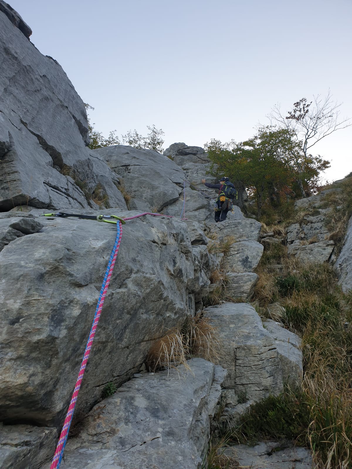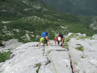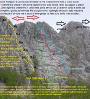 - di calarsi sulla via per sicurezza di chi sale per evitare di smuovere qualcosa ,ma per emergenza e’ possibile farlo sulla solita linea di salita .