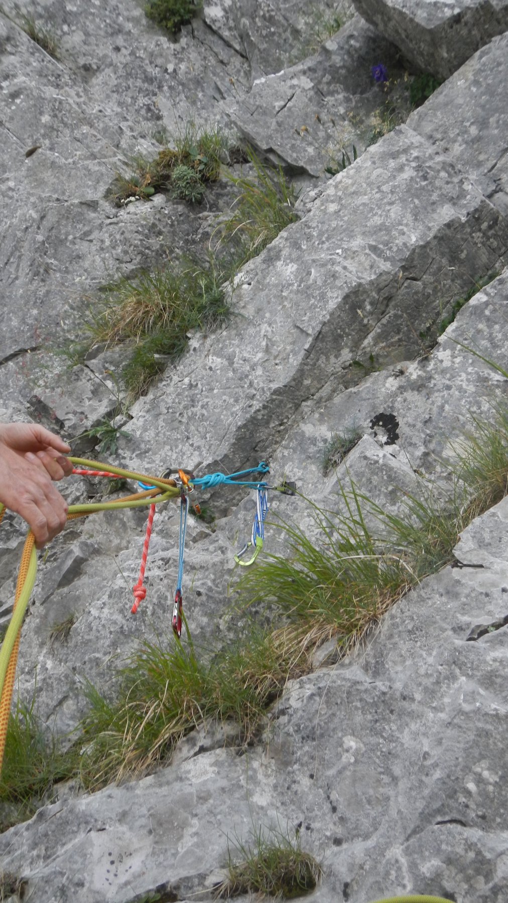 L2; vincere un muretto verticale e proseguire su spigolo lato sx 2 chiodi e 2 friend IV+ sosta su albero (40 m)