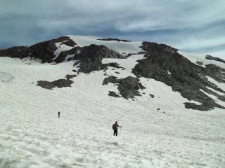 Percorso un bel pezzo di ghiacciaio, ritirato, un po’ annerito ma senza difficolta’.