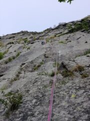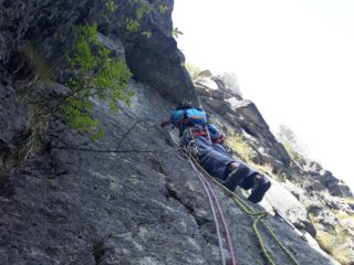 Un po’ di anni fa, scorrendo il vecchio e glorioso “Sogno di Sea”, lo sguardo si pose sulla via della Fisarmonica al Naufrago. Tra gli apritori, oltre ad Isidoro Meneghin, figuravano Adelchi Lucchetta e Claudio Battezzati. Proprio Adelchi ci raccontò di quando Isidoro Meneghin passò un tempo memorabile, calandosi dalla sosta dove era arrivato, per togliere un chiodo che proprio non voleva venire via. Anni dopo, siamo tornati al Naufrago, chissà che questa volta, come molti chiedono, non riusciamo a trovare una linea facile e plaisir in Sea! Nulla, la via, ancora una volta si è rivelata bella, ma non facile! E’ un itinerario selvaggio su una parete selvaggia, benché di comodo accesso. Sembra una via a tratti erbosa, ma in realtà l’erba non si sfiora mai, si sta sempre sulla roccia, che è decisamente bella! Alla fine è venuta fuori una via pressoché nuova. I primi 4 tiri non sono difficili ma bisogna, nei tratti non chiodati a fix, sapersi proteggere, anche se sempre evidente: bello il passaggino in placca del secondo tiro, protetto da uno (o due, come vorrete voi) friends bomba! Abbiamo pulito molto gli ultimi due tiri, ora sembra passata un’impresa di pulizie rispetto a come li abbiamo trovati..il penultimo in particolare è davvero un tiro di classe… gli ultimi due spit resistono, ma qualche giovane e forte li libererà senz’altro (magari uno spazzolino dietro è meglio averlo). Facilmente abbinabile ad altre vie presenti sulla parete, grazie alla rapidissima discesa in doppia.