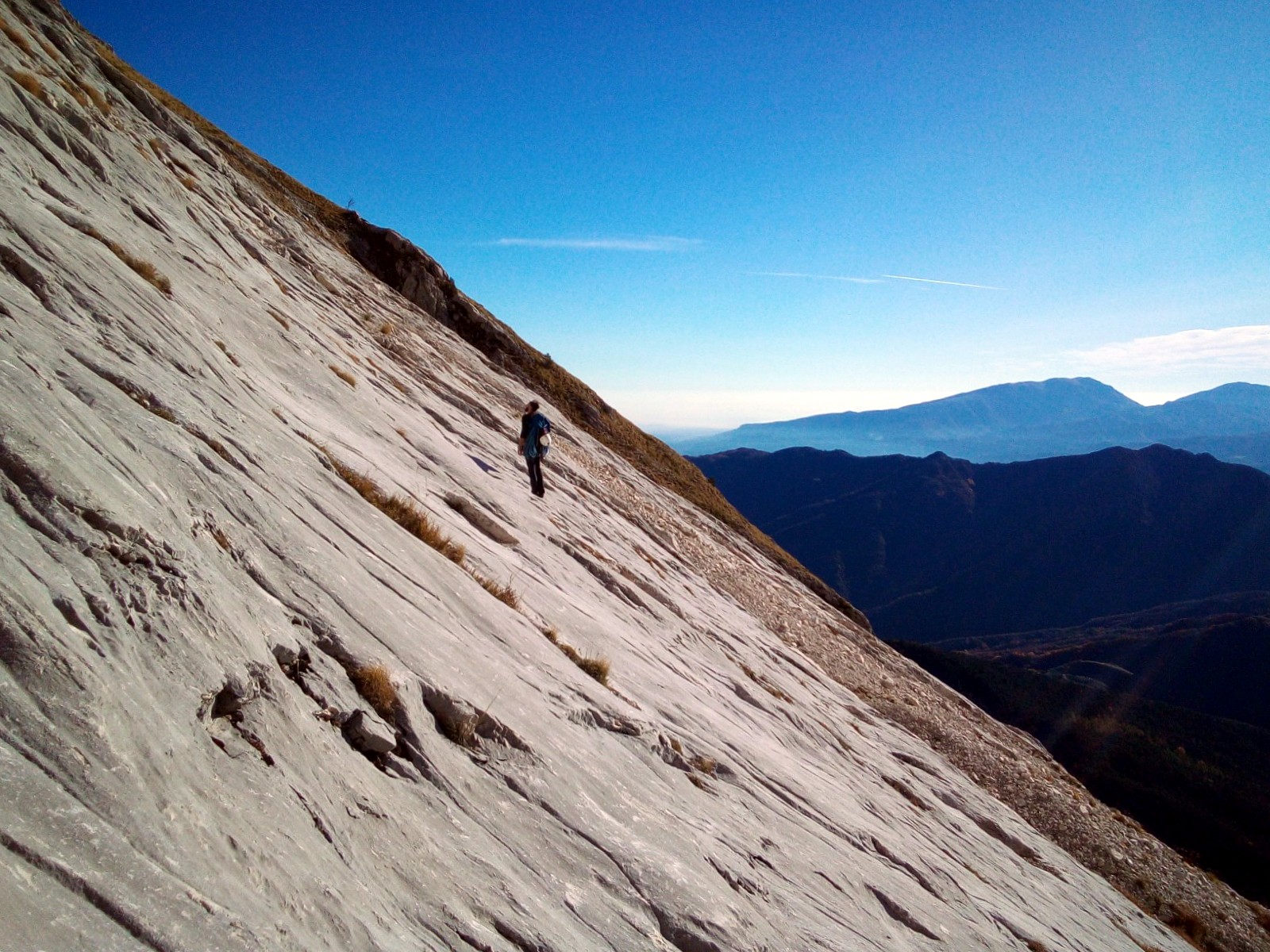 L’avvicinamento è ben segnalato da ometti ); la placconata dell’Aia della Regina in alcuni punti è delicata per via dei detriti e della ghiaia.