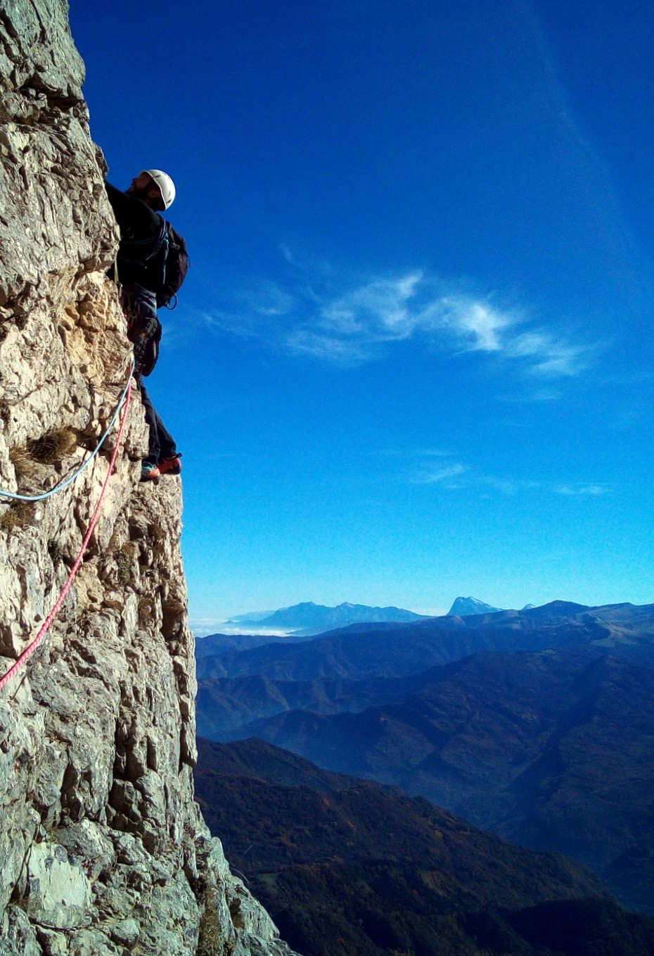 La roccia lungo la via è spesso rotta o scagliosa, talvolta discreta e raramente buona. Qualche chiodo è presente lungo i tiri, spesso le soste vanno rinforzate ma non sempre la roccia dà possibilità di piantare chiodi; ad ogni modo, sono preferibili quelli sottili a lama. La linea è intuitiva.