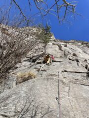 Via bella ma che necessità di qualche passaggio per pulirla da licheni secchi e terra. Scesi in doppia senza problemi.