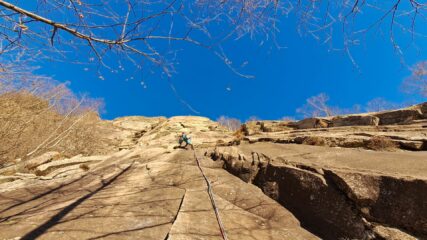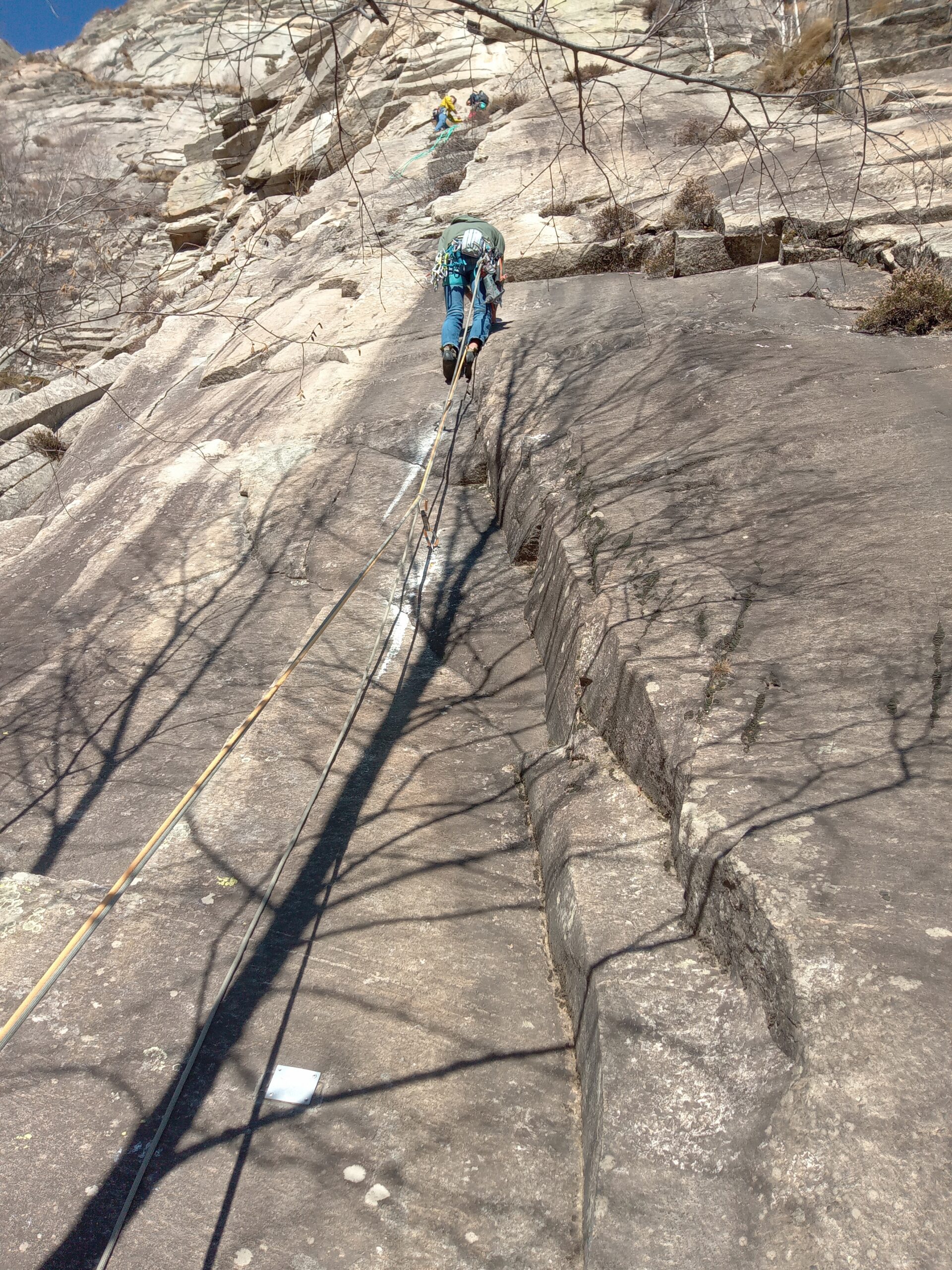 - Il secondo tiro su roccia molto bella e verticale con ottime maniglie ed un passo più delicato (6a) su quarzini.