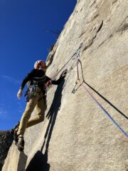 L3 tiro chiave con partenza su una lavagna di 7A/B che volendo si passa in artificiale poi continuo nelle difficoltà 6B+/6C con traverso a destra, risalti strapiombanti e chiodatura andante – un bel viaggio! L4 placchette e risalti non banali.