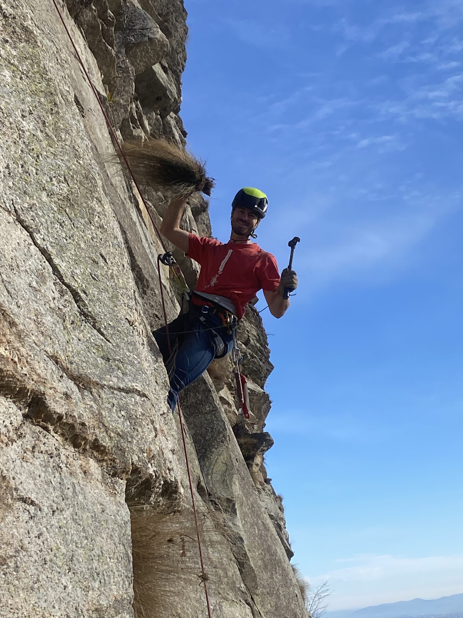 Inoltre abbiamo pulito da erbacce e arbusti il diedro del penultimo tiro