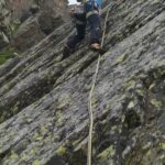 - L4 3c 4b si segue un vago speroncino inframmezzato da zone erbose fino all’uscita delle difficoltà presso evidente roccia di cima 50 mt circa.
